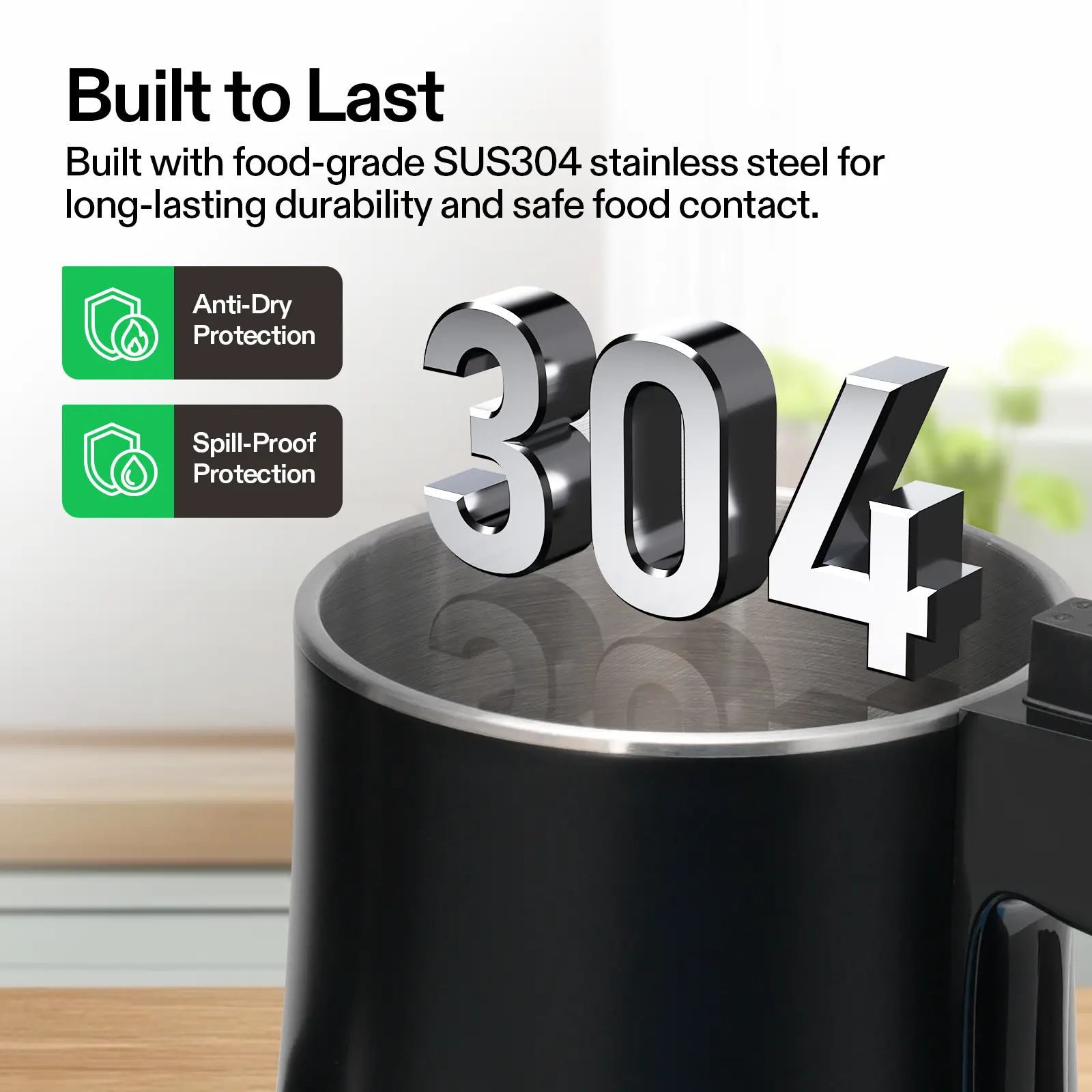 ·Safe & Durable: Made with SUS304 stainless steel for the housing, liner, and blades, ensuring durability and safe use with direct food contact; Features anti-dry and spill-proof protection for safe operation