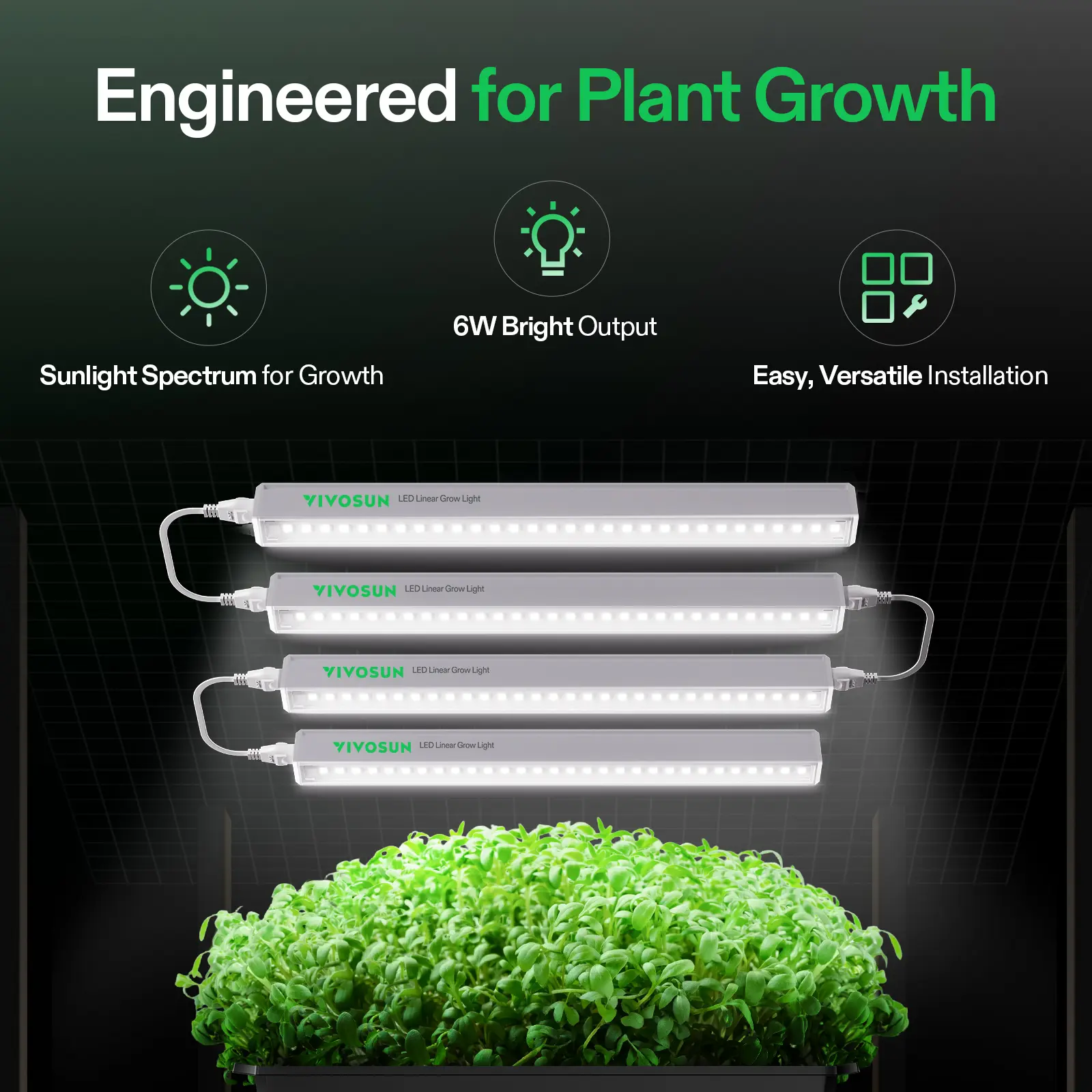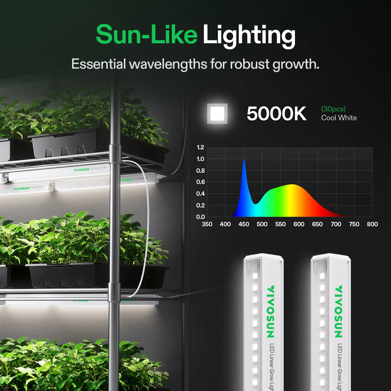 Vivosun T5 full-spectrum grow lights provide sun-like care, helping seedlings grow faster and stronger. Perfect for supplementing lighting for seedlings, vegetables, or flowers in grow tents, greenhouses, or any indoor growing space. These lights ensure optimal plant growth while saving energy.