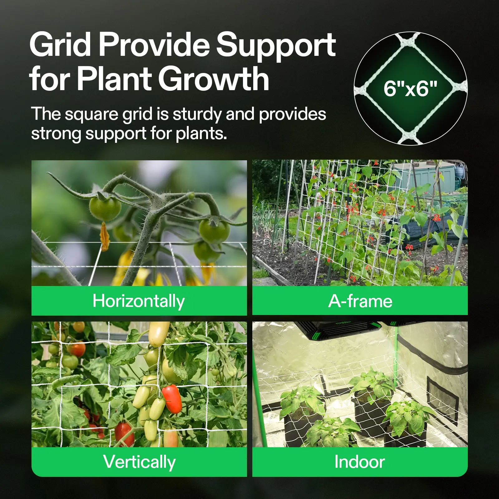 ·Save Space: You can direct the growth of your plants and maximize your space by weaving the netting around poles or other structures; When you pull the netting until it’s taut, the sturdy trellis will carry the weight of your plant