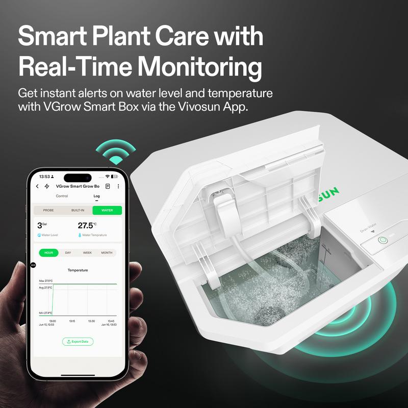 ·Plug & Grow with Smart Monitoring: Get growing right away with the DWC hydroponic system designed for VGrow Smart Box; Built-in sensors track water level and temperature, sending real-time alerts through the Vivosun App for easy, stress-free care