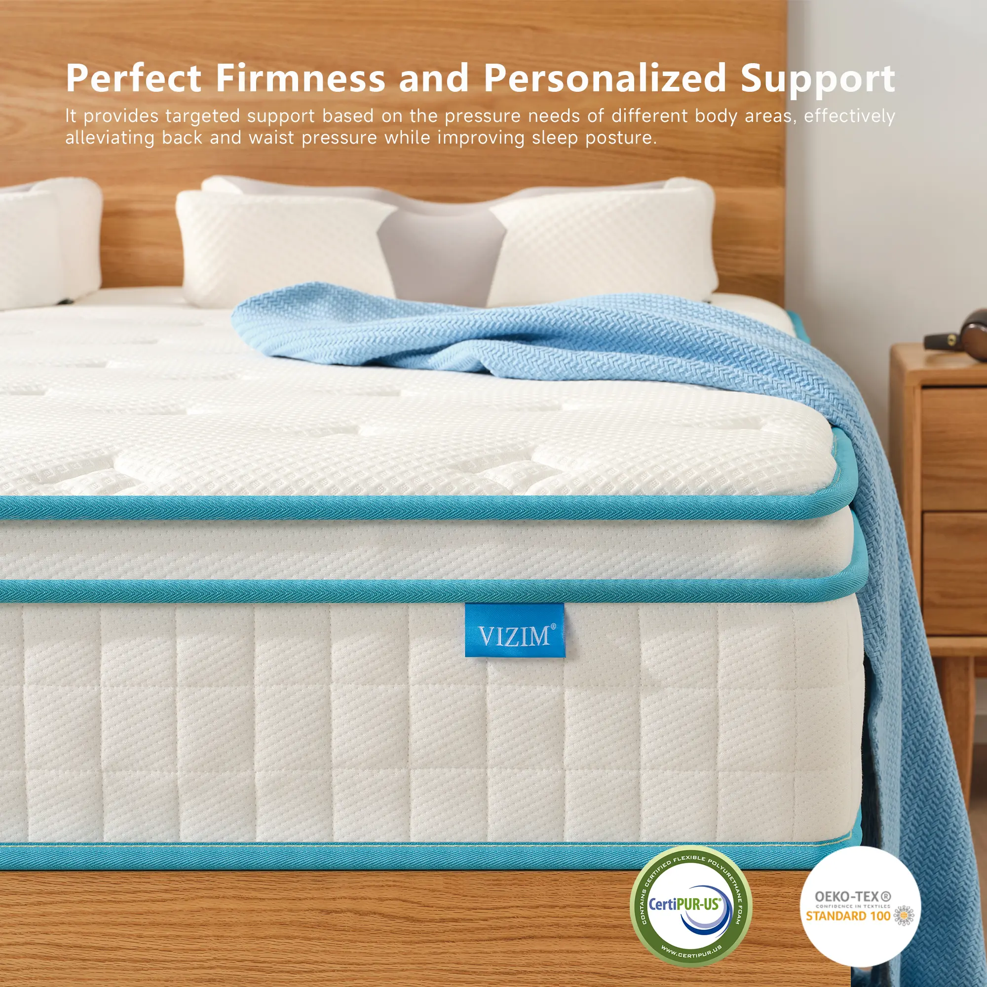 ·We maintain strict quality control over every VIZIM mattress, ensuring a longer average lifespan. The medium-firm mattress comes with a 100-day trial. If you're not completely satisfied, feel free to reach out to us at any time.