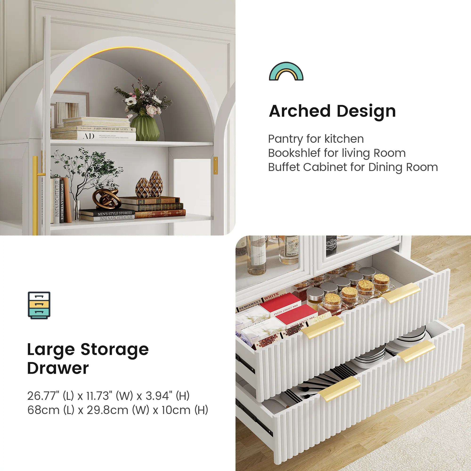 ·Sleek Arched Top: The unique arched design adds a sophisticated and stylish touch, making it a standout piece in any room