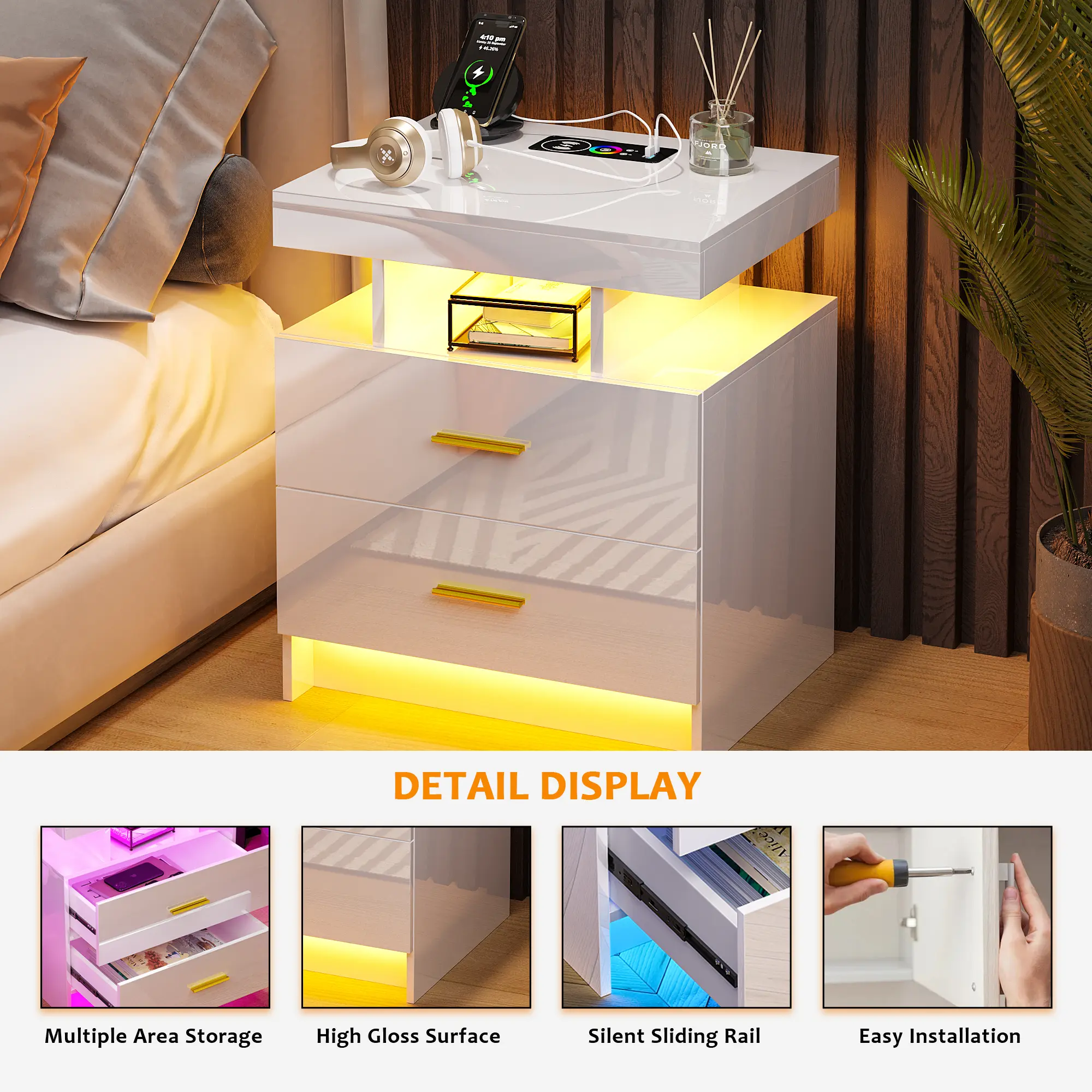 ·【High-Gloss Nightstand】 This wood nightstand is made of high-quality high-gloss wood, which is not only easy to clean, but also durable and can be integrated with different home decorations and styles.