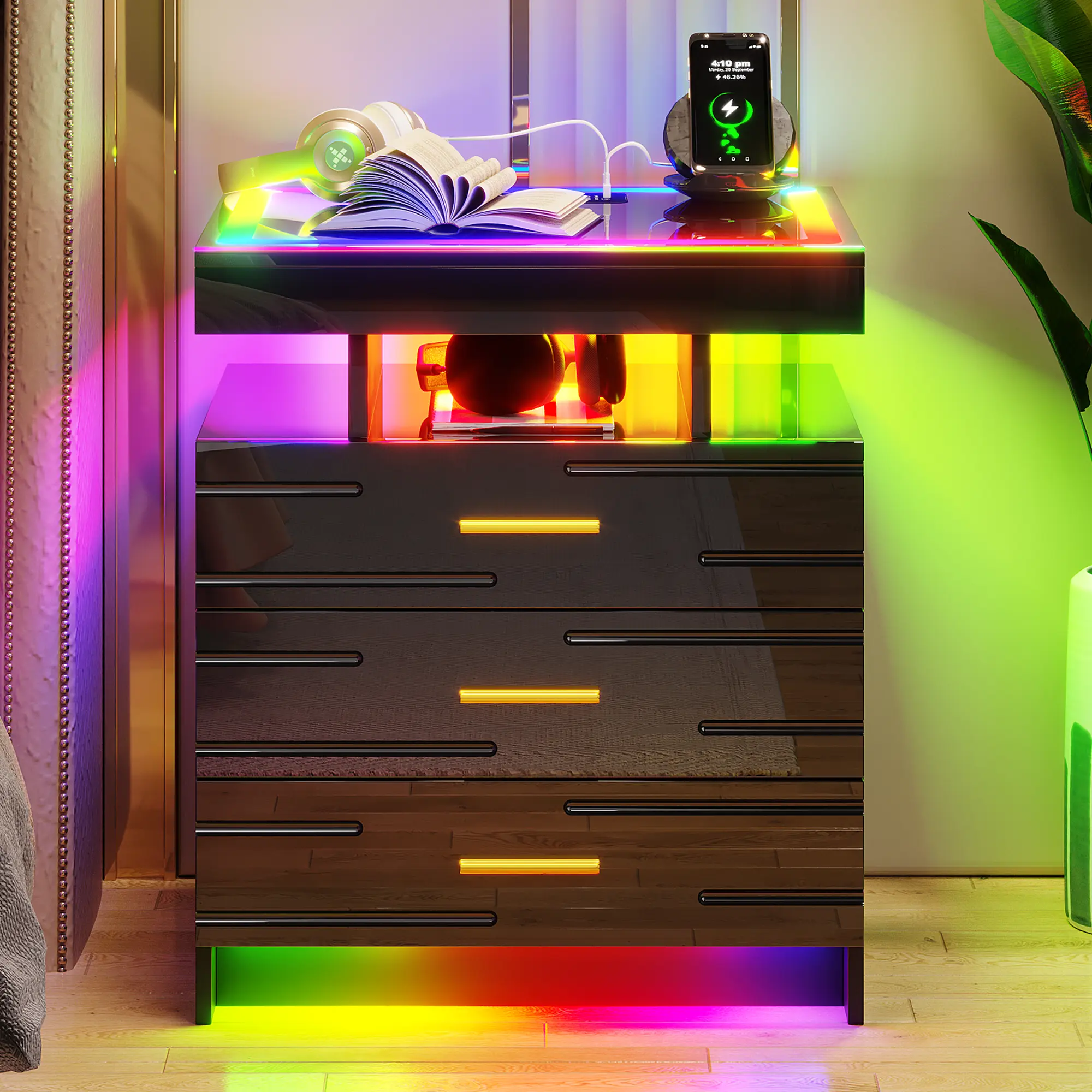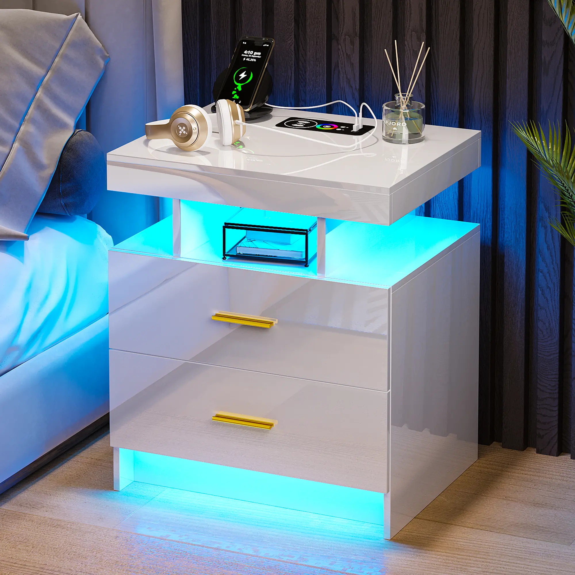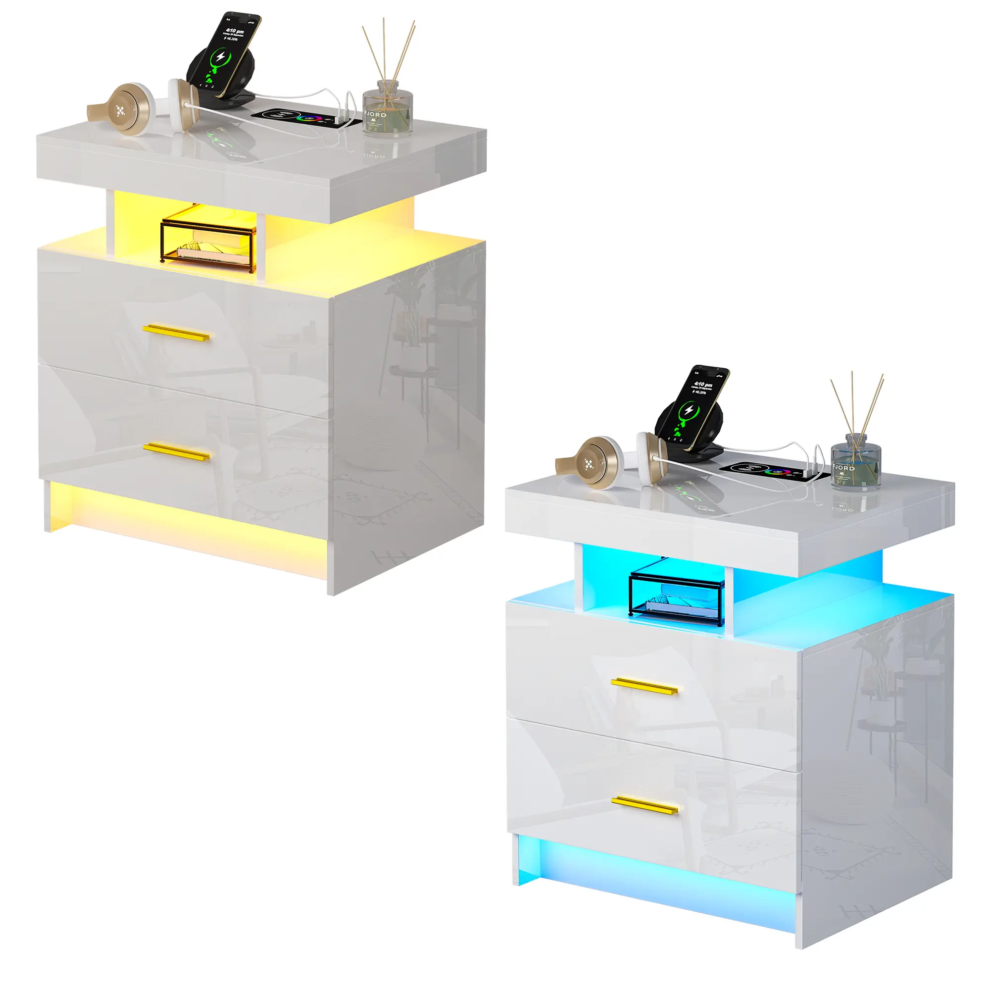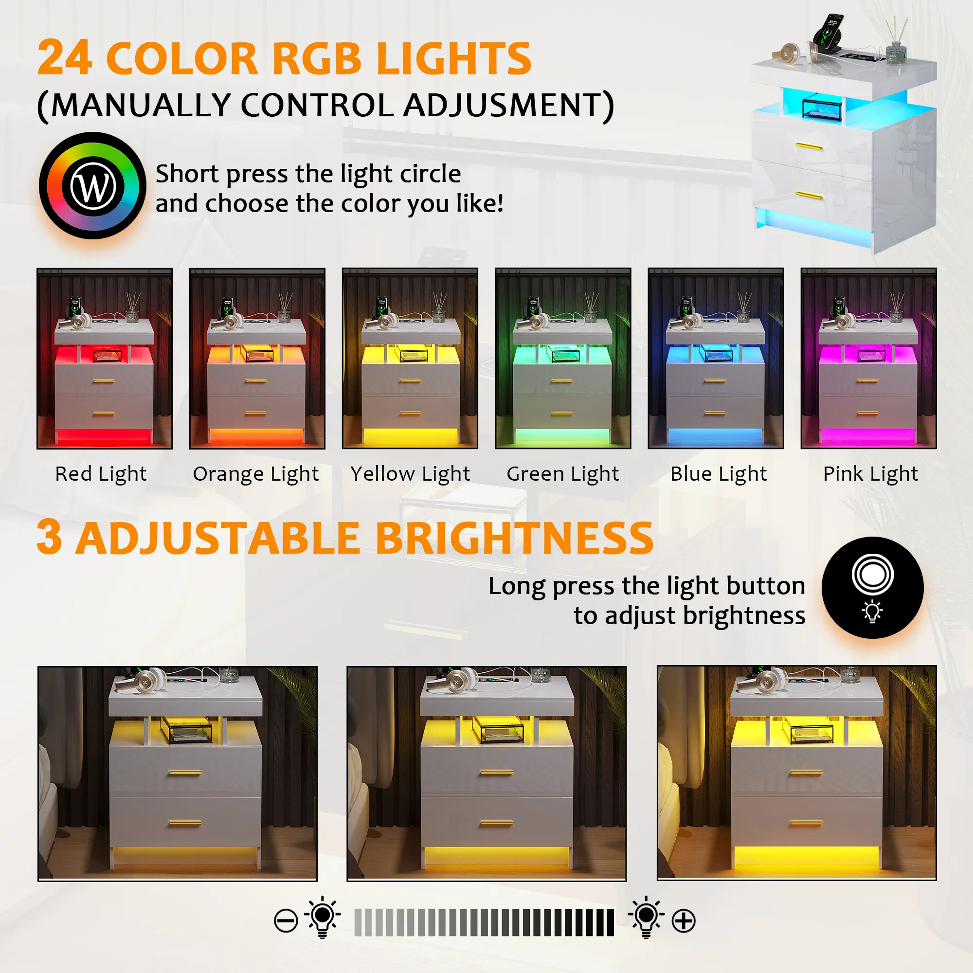 ·【RGB Lighting】This smart LED nightstand has 24 colors of light, you can adjust the color and brightness according to your needs, let you feel immersive!