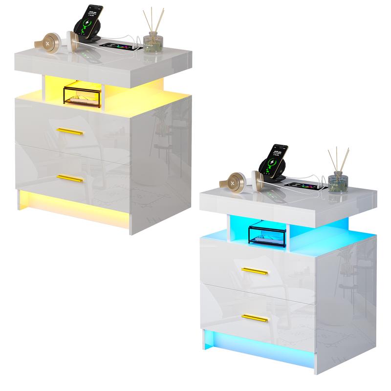 ·【2 Charging Ports with Wireless Charging】Small side table has 1 USB port, 1 Typec port and wireless charging, which is convenient for you to charge your cell phone, tablet and other electronic devices, so that you can enjoy the atmosphere created by the LED nightstand while enjoying the convenience it brings to you.
