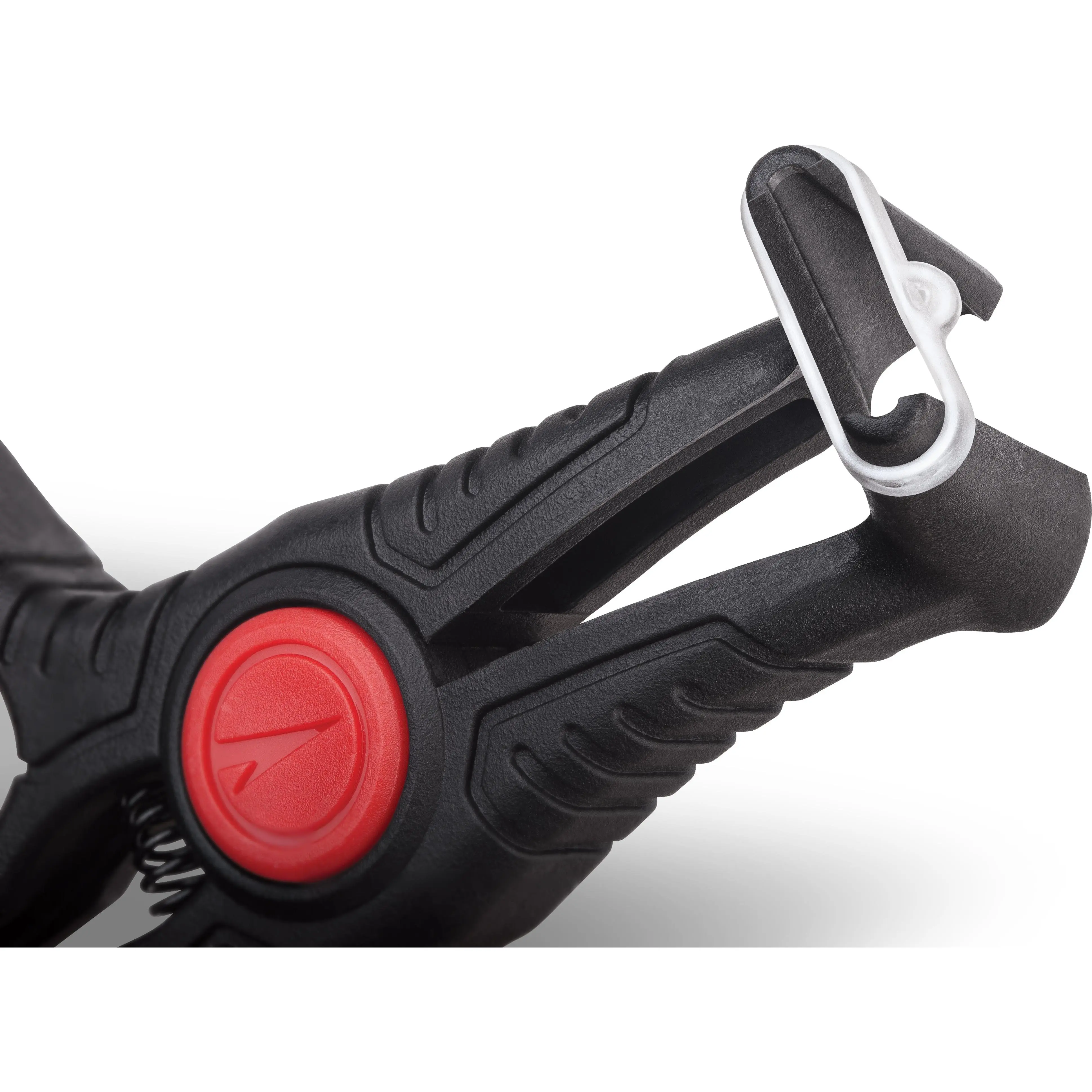 The VMC Crossover Pliers are a rigging tool designed for use with the new VMC Crossover Neko/Wacky Rings. To operate, simply slide the desired size Crossover Ring over the closed jaws. Compress the plier handles to open the jaws, stretching the Crossover Ring. Insert and position a soft plastic such as a worm or soft stickbait into the Crossover Ring. Slowly close the jaws by releasing tension to the handle while stabilizing the Crossover Rings position. While holding one end of the soft plastic, pull the pliers away from the rig.