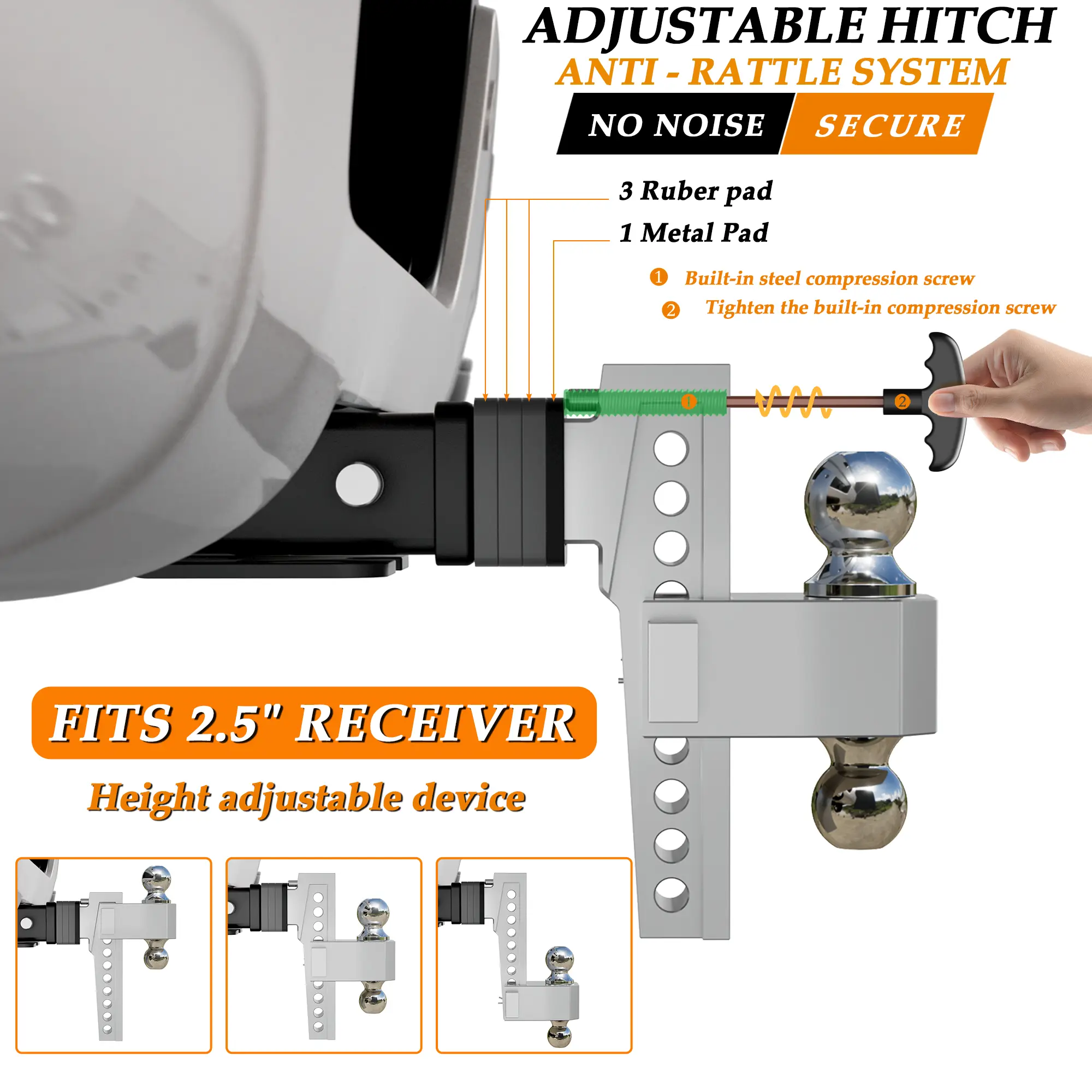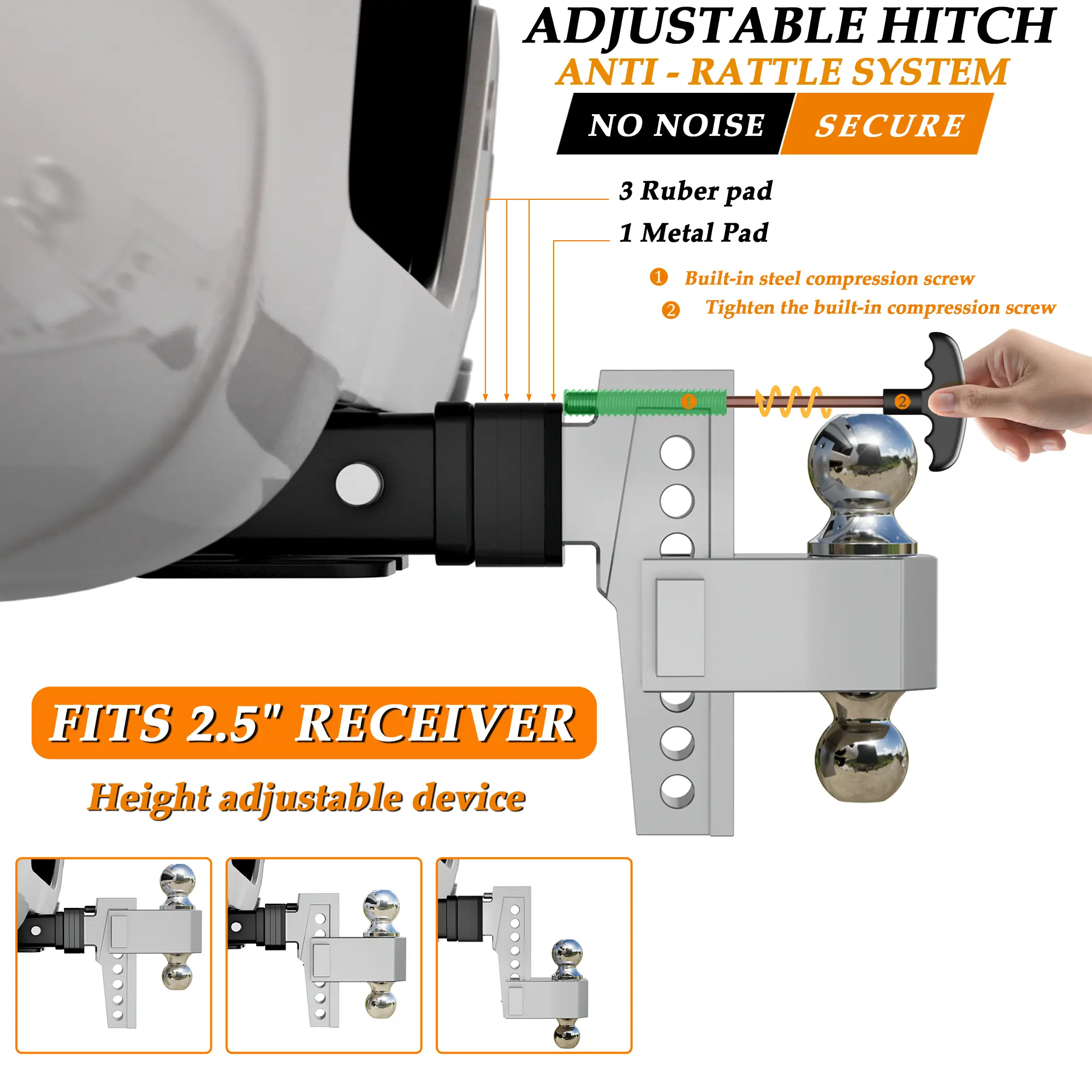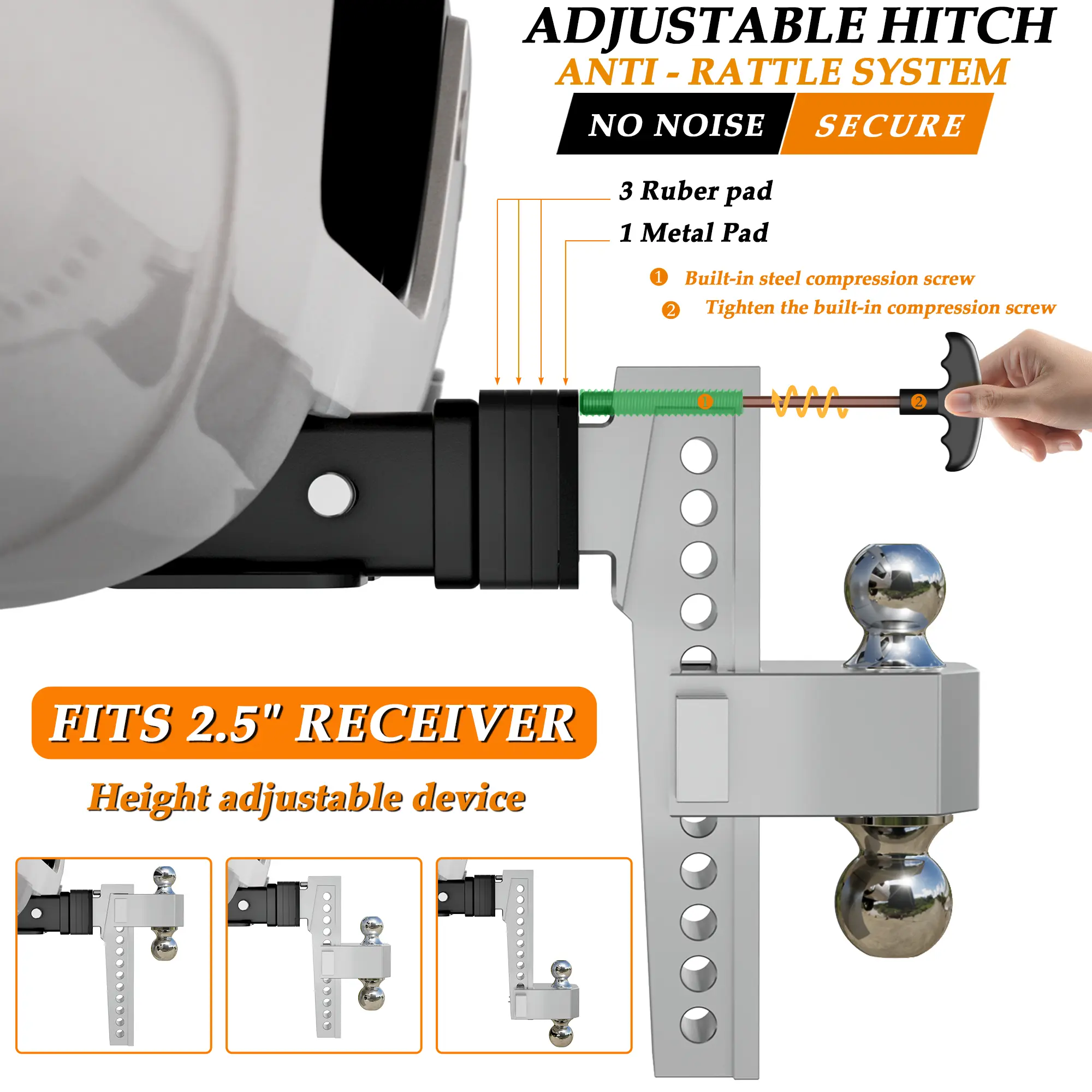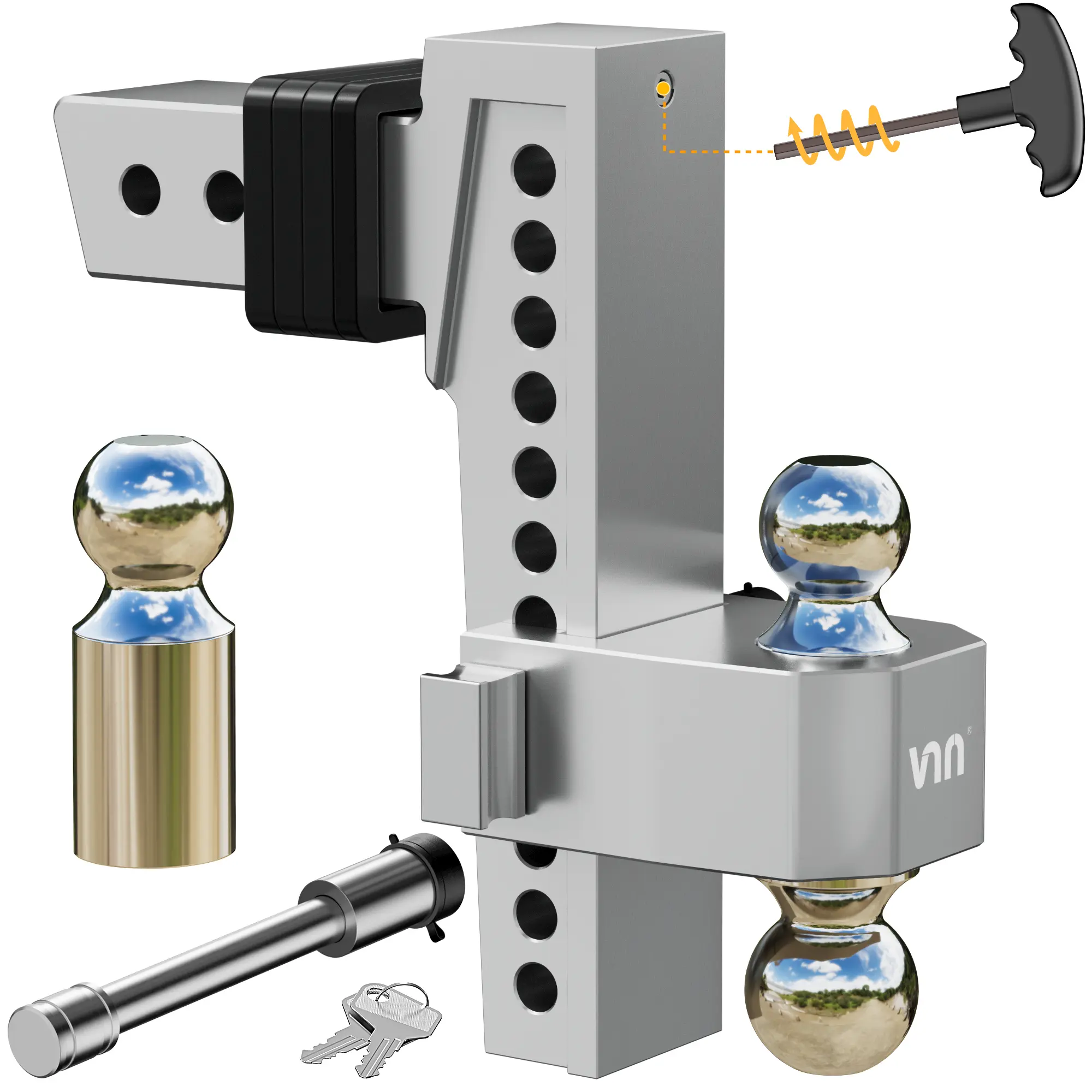 ·Key Features: The VNN Adjustable Trailer Hitch offers a 6-10 inch drop hitch with a 2.5 inch receiver. It includes interchangeable 3 solid ball mounts: 1-7/8", 2", and 2-5/16". 📏