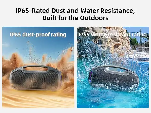 Dive into powerful sound with the Vocan Portable Bluetooth Speakers. Packed with 200W peak sound, these speakers deliver deep bass for an immersive audio experience. Equipped with 2 subwoofers and tweeter DSP, they enhance your music with precision. The IP65 waterproof design ensures durability for outdoor use. Enjoy 24H playtime with fast charging and TWS functionality. Connect via TF, USB, AUX for versatile audio options.