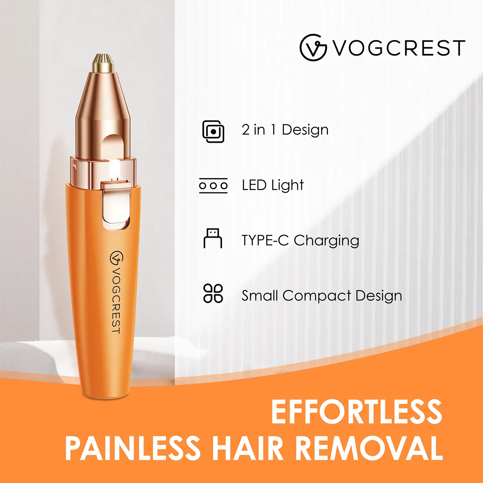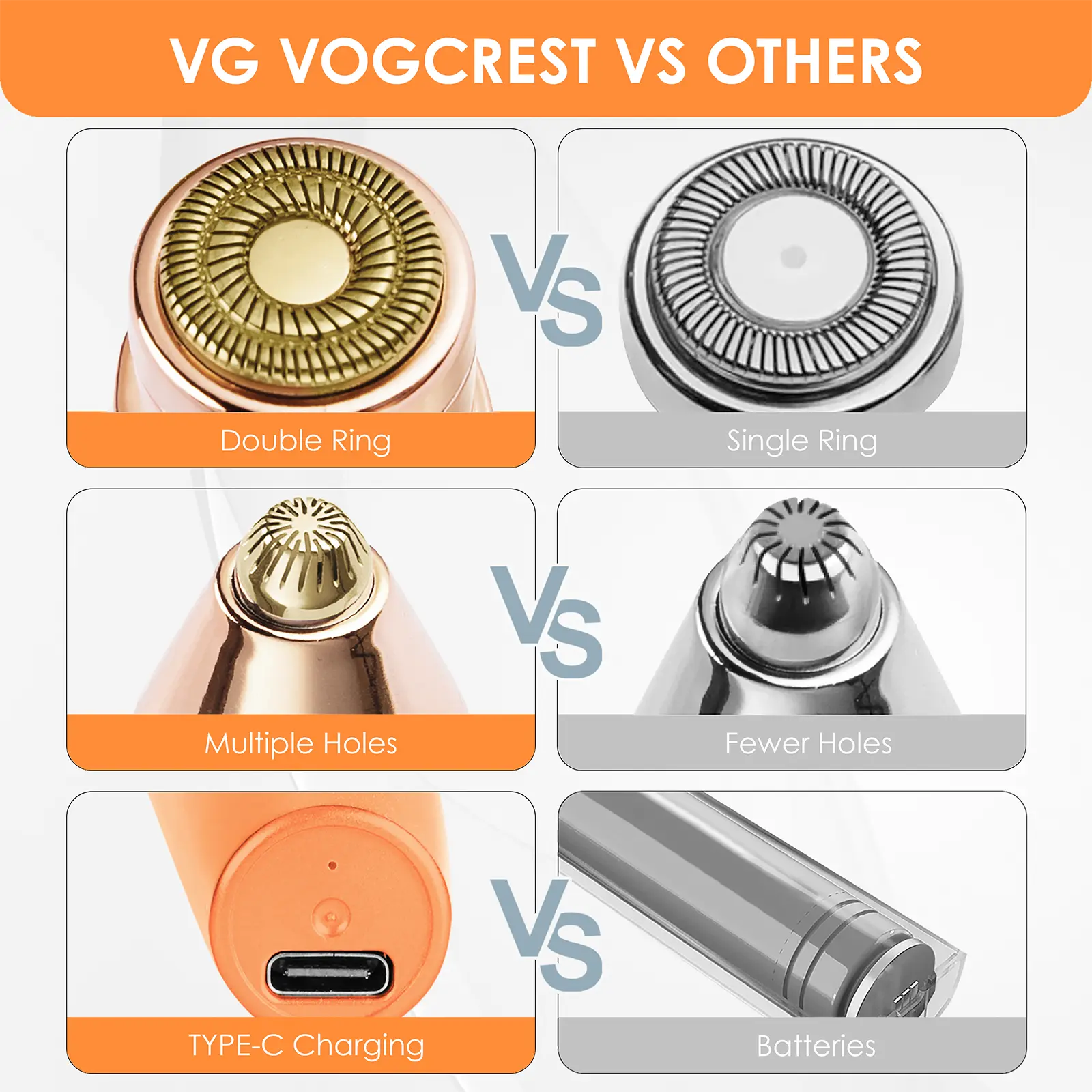 ·2 in 1: Vogcrest facial hair remover and eyebrow trimmer for women is ingeniously designed to remove face and eyebrow hair, leaving you free from any worries about unwanted hair.