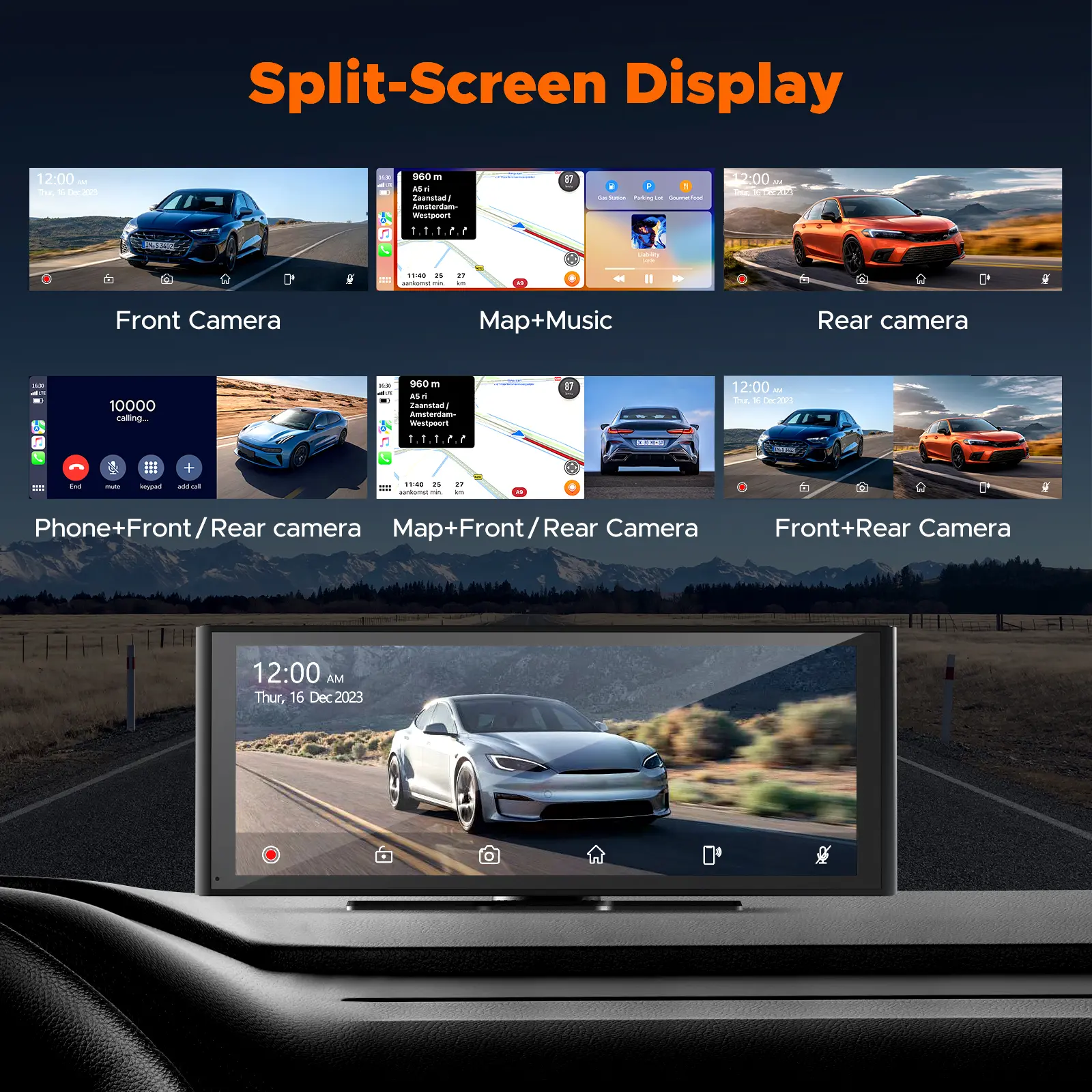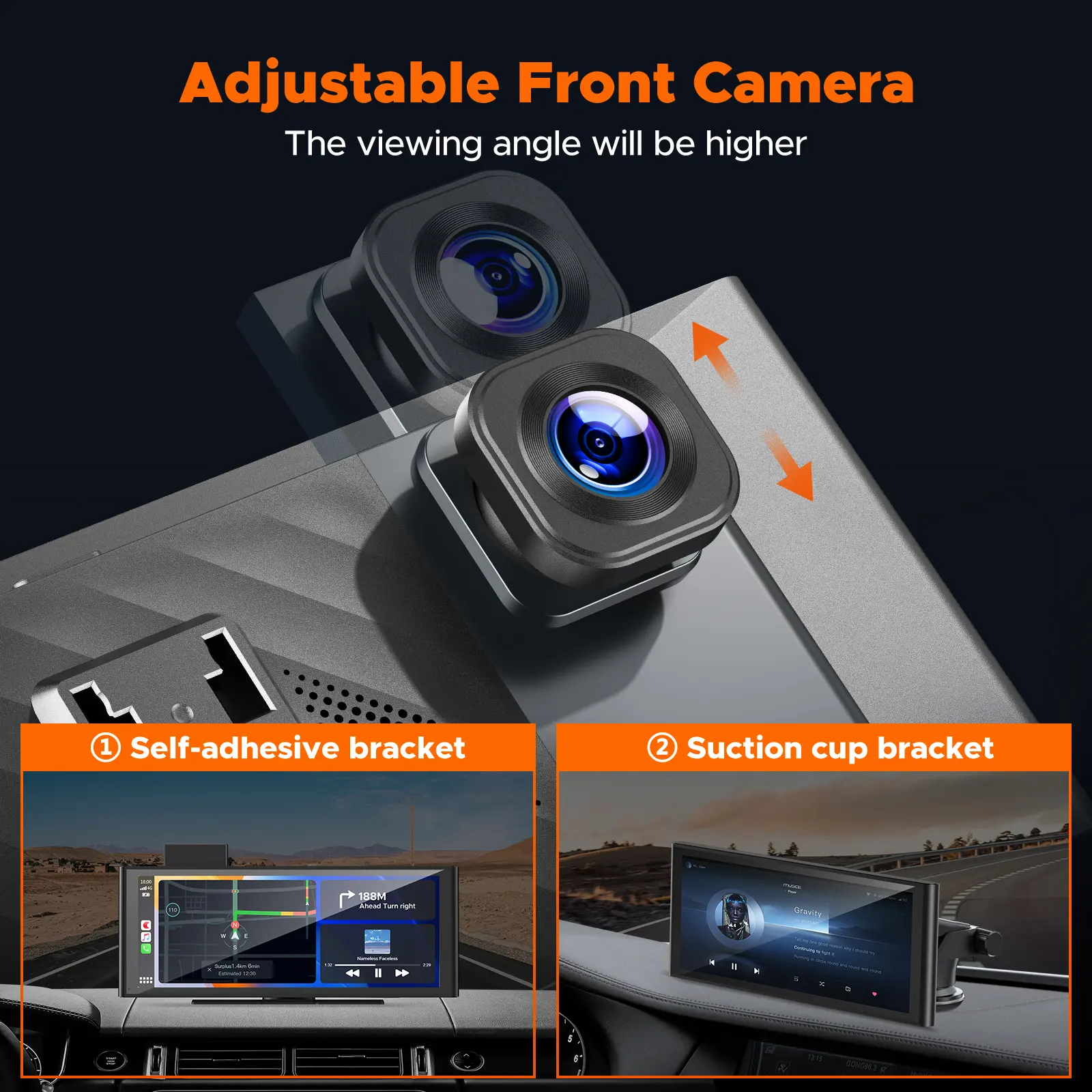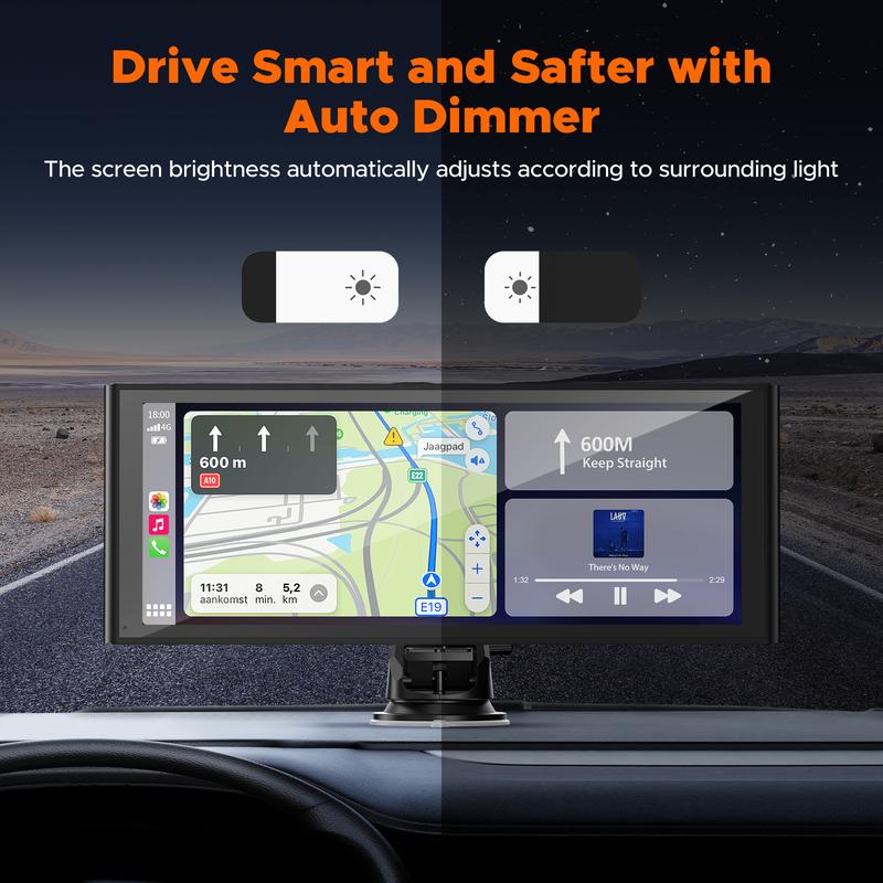 【The Carplay with 9.26'' Large Touch Screen, Can Automatic Dimming】The car play screen has a 9.26'' Full touch screen for easy operation on settings/functions. The dash cam has an automatic light-sensing function that automatically adjusts the screen brightness so that you can see the screen content even when passing through a tunnel or when the sky gets dark. Support audio recording and locked video on the Apple car play. Real-time video playback can be viewed on the large car play display.
