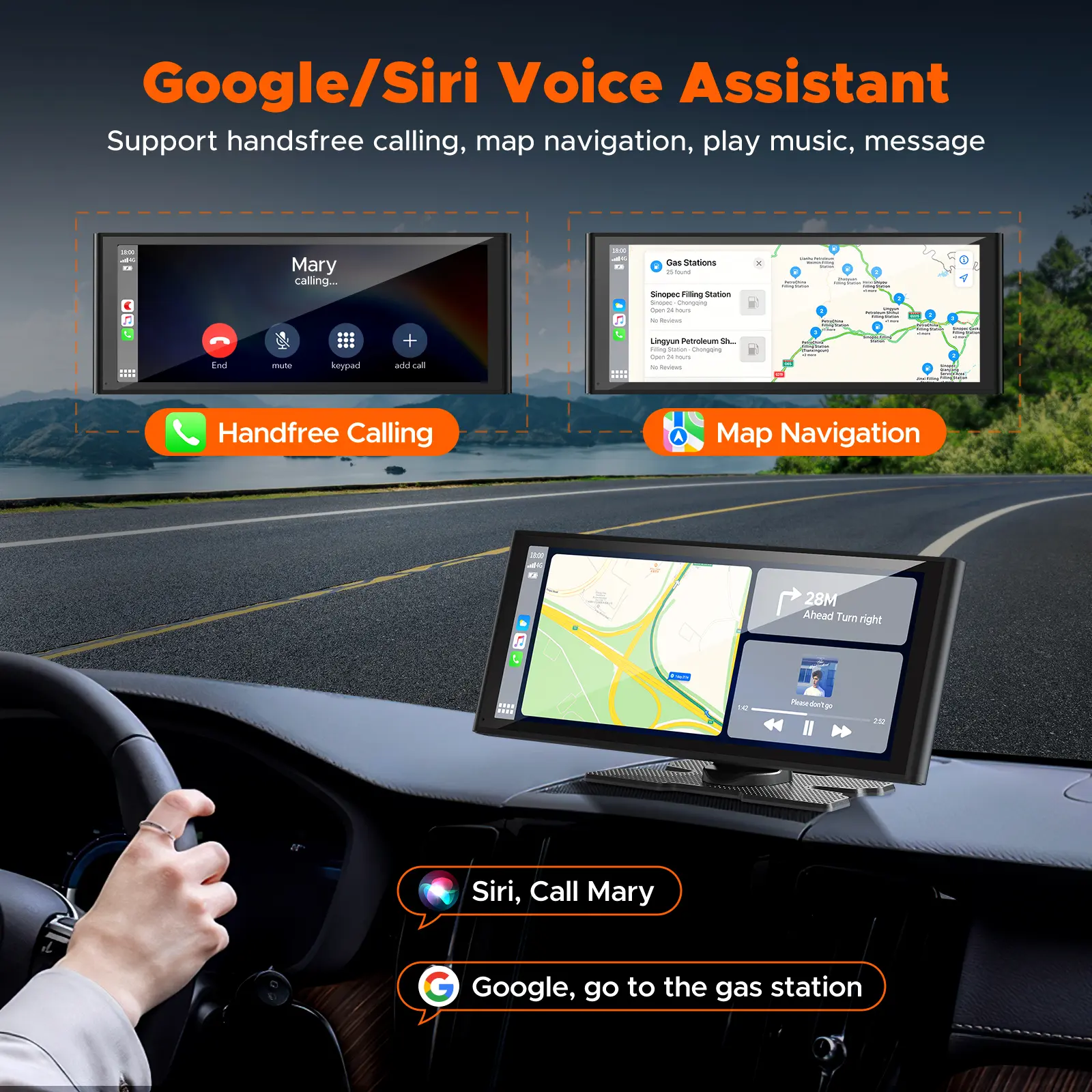 【2026 Apple Carplay Screen with Wireless Carplay, Android Auto and Mirror Link 】Connect your phone to the apple carplay via Bluetooth and wifi to achieve wireless CarPlay and Android Auto, you can activate Siri/Google voice control and easily access mobile maps, music, calls. The dash cam can also achieve mirroring functions through Apple Airplay and Android Cast, the car play screen mirrors any APP on your phone, such as TikTok videos. Supports iPhone and Android phones.