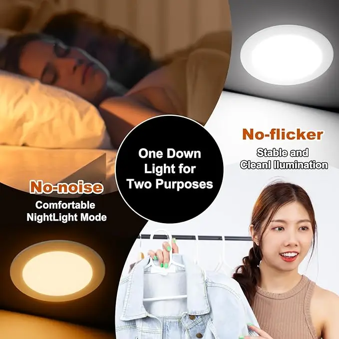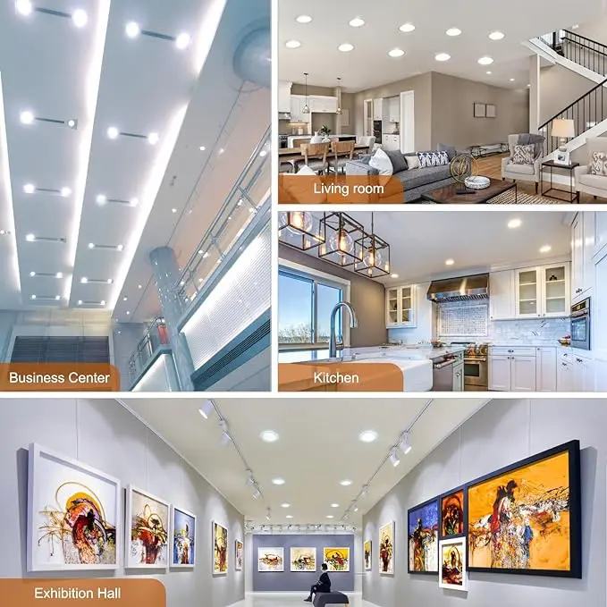 ·Seamless Dimming & Broad Compatibility: Experience smooth dimming from 100% to 5%, compatible with most market dimmers. Our flicker-free, noiseless LED downlights provide clear, adjustable lighting for kitchens, living rooms, hallways, and more, enhancing the ambiance of any area.
