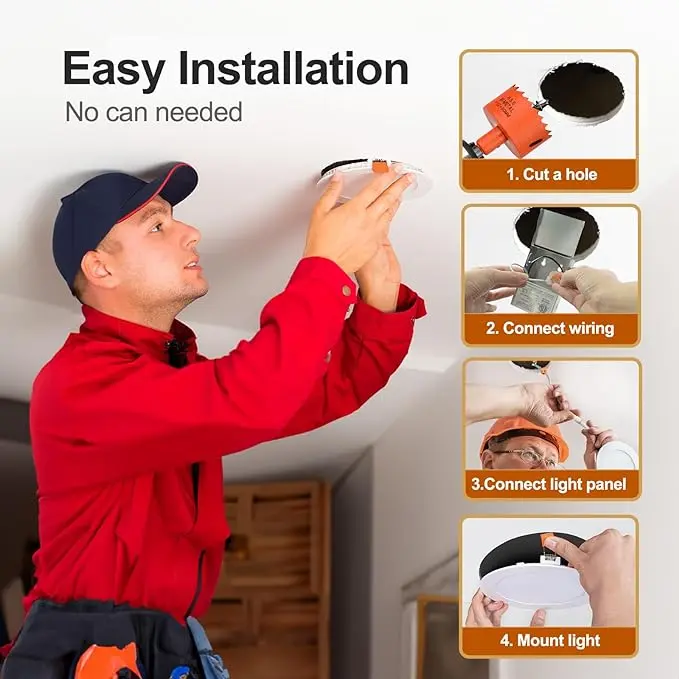 ·Effortless Installation: VOLIVO's ultra-thin design is perfect for both retrofitting and new installations. With a simple cut-out using our 1:1 template and easy J-box connection, our lights require minimal ceiling space and are compatible with various ceiling types.