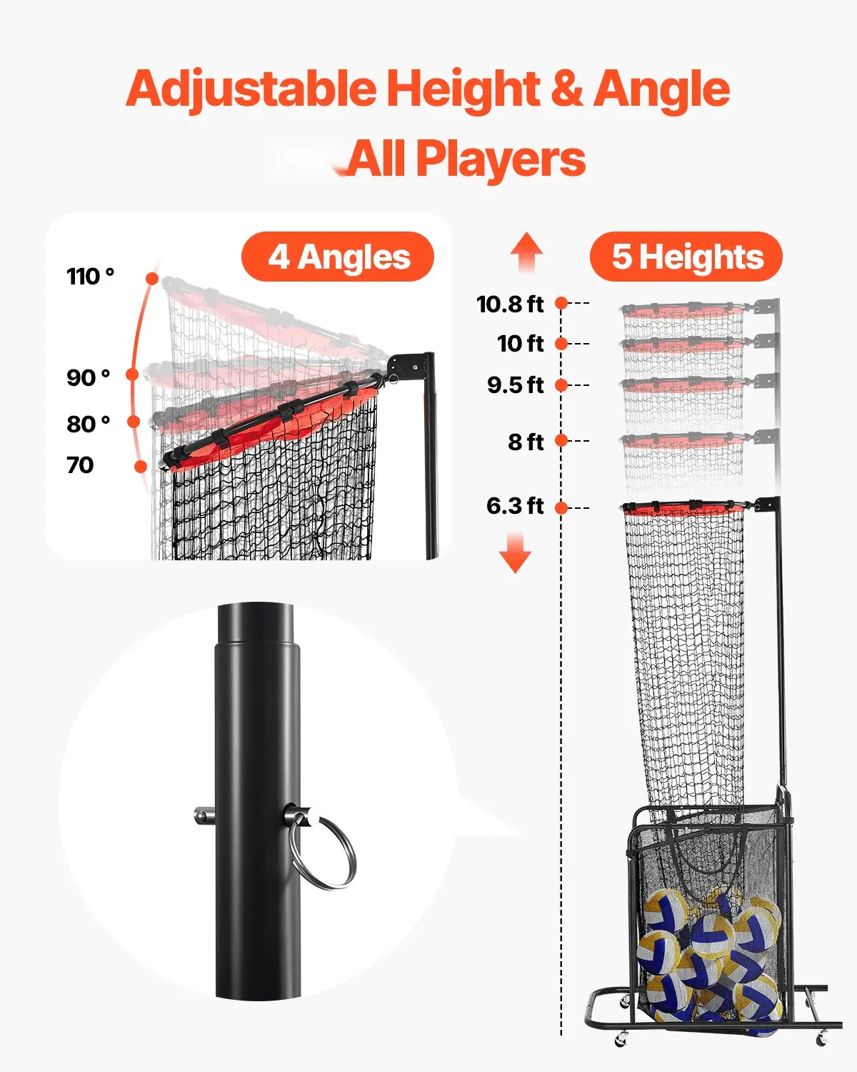 ·Pro Height & Angle Control: The volleyball setter training equipment adjusts from 6.3ft to 10.8ft in seconds, accommodating youth leagues, college athletes, and adult recreational players