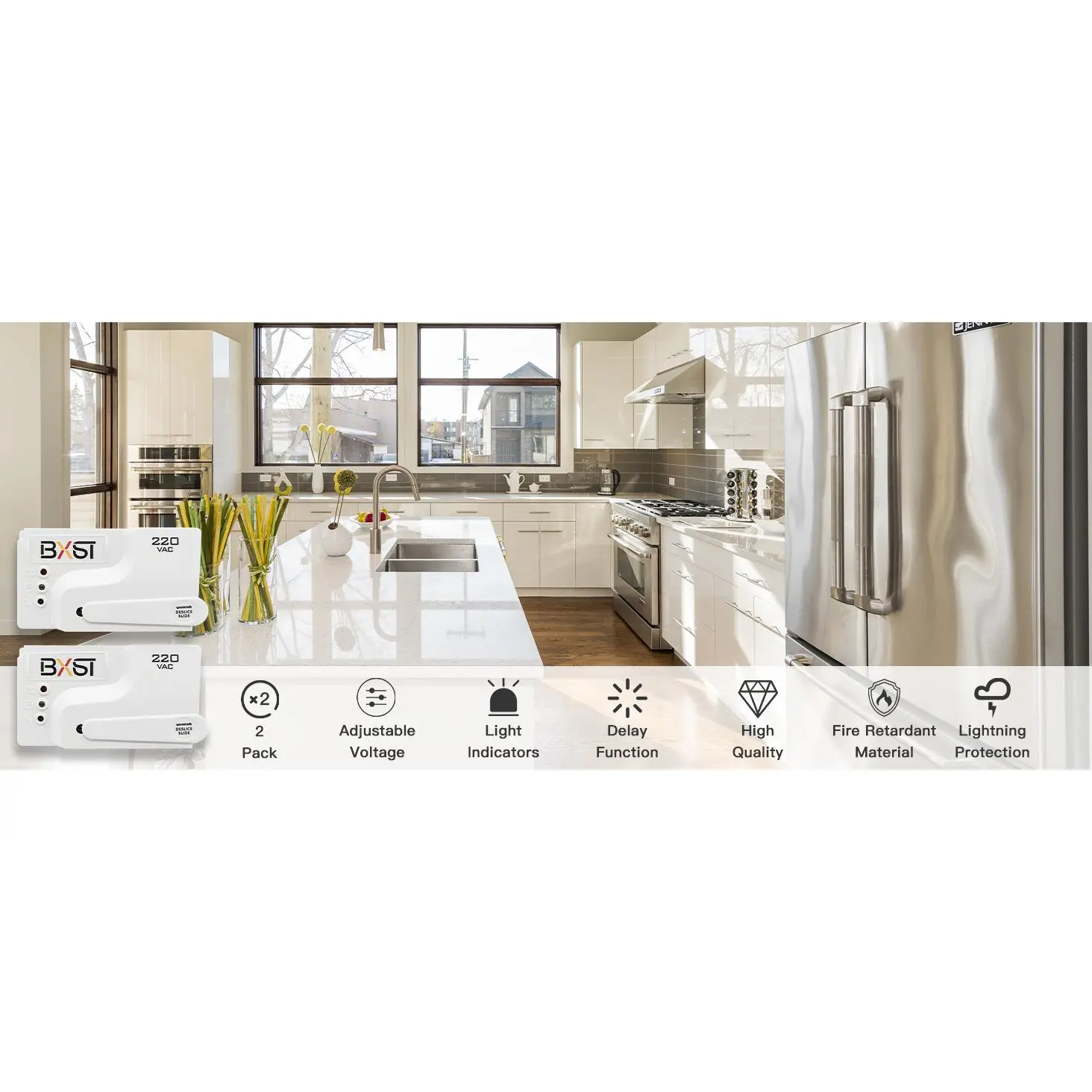 BSEED Wiring Power Surge Protector, Adjustable Voltage Regulator with Light Indicators, 2 Pack