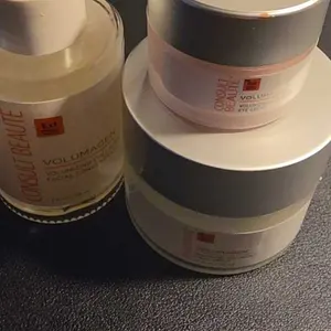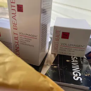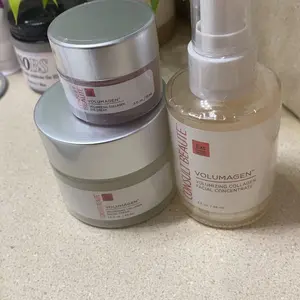 Elevate your skincare routine with the Consult Beaute Volumagen Trio. This set includes the 2 oz. Volumagen Concentrate, 1.7 oz. Facial Cream, and 0.5 oz. Eye Cream. It's designed to plump and hydrate aging skin, restoring lost volume and firmness. Perfect for those with mature or dehydrated skin, this trio offers targeted care for face, eyes, and overall hydration.