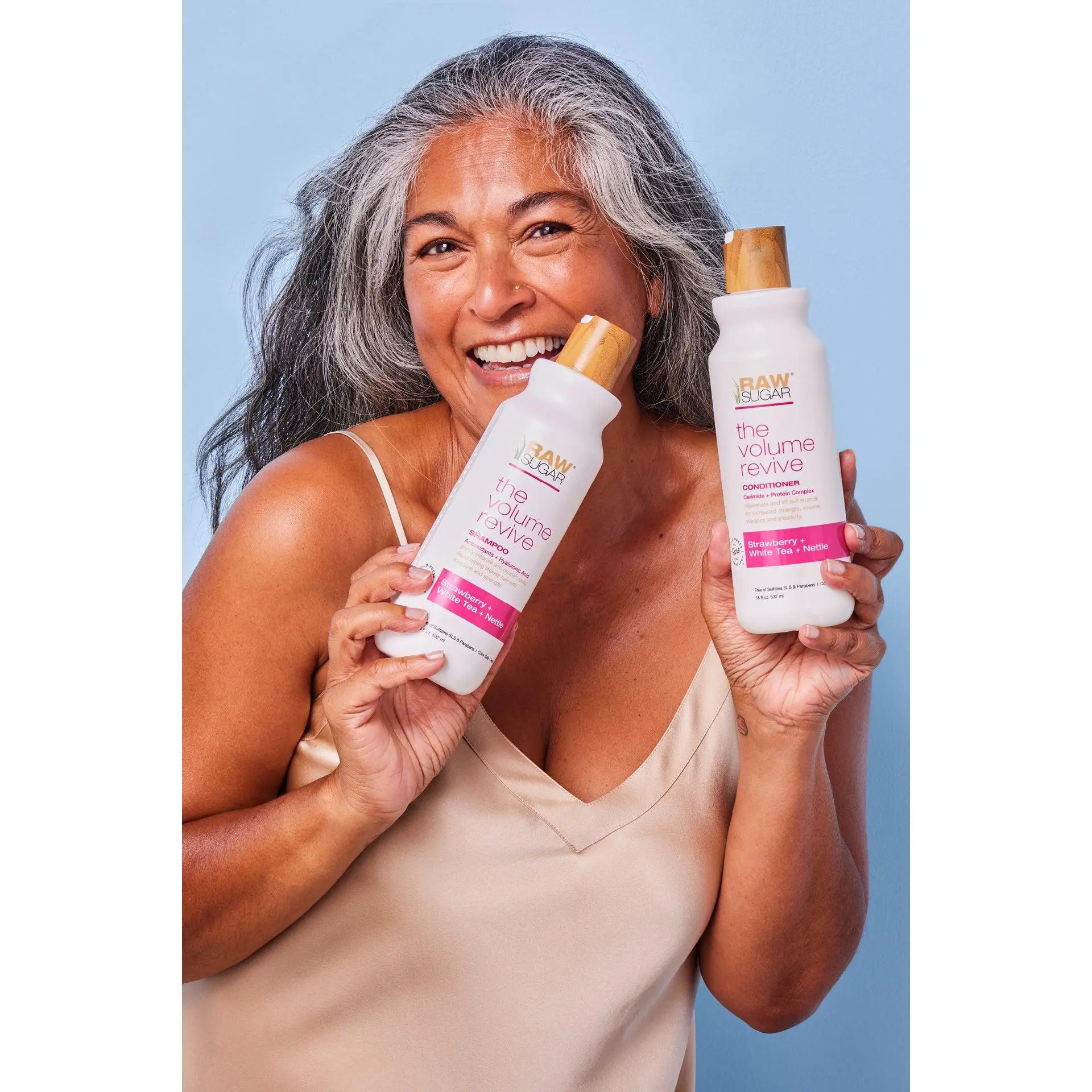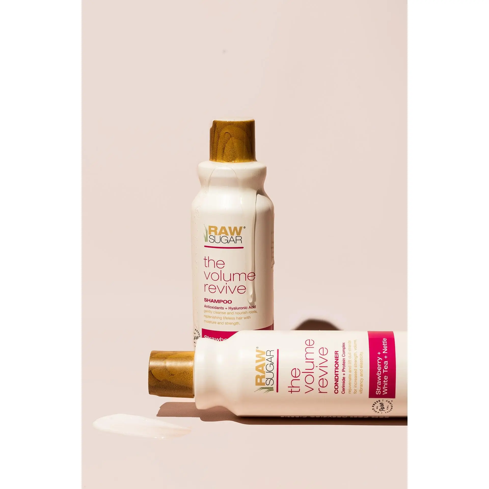 Love your hair from the outside in with Raw Sugar's Volume Revive Conditioner. Infused with Nettle, White Tea and Strawberry Extracts plus Ceramides and a Protein Complex, this lush and rejuvenating formula nourishes your hair and scalp to rejuvenate and condition without weighing hair down.