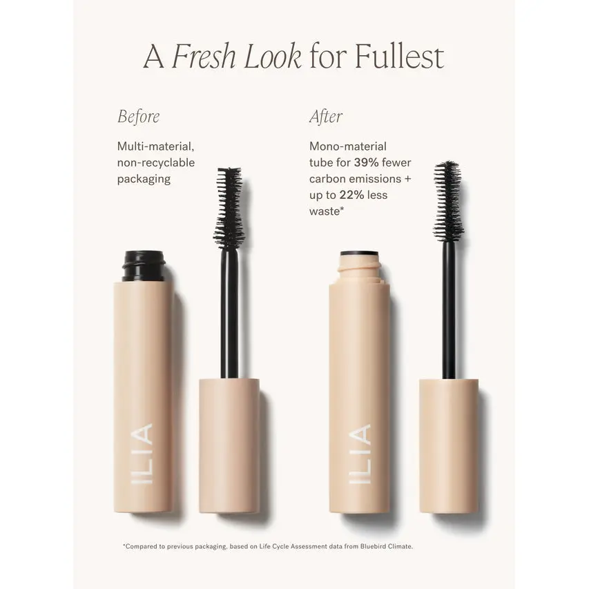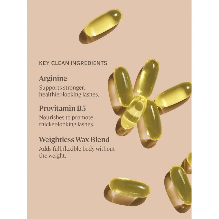 What It Is: A clean volumizing mascara that wraps each lash in weightless, buildable volume without flaking or smudging. Safe for sensitive eyes. New lighter, mono-material tube reduces carbon emissions by 39% and waste by 22%.*