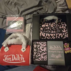Loooove the inside the baby pink is just tooooo cute SO spacious π fits well in my red snow leopard bag that I also bought from Von Dutch β€οΈβπ₯β€οΈβπ₯