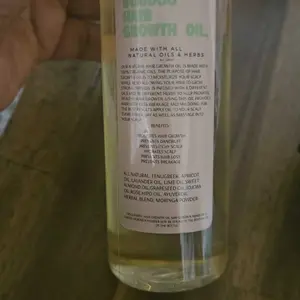 Ingredients: castor oil, lemongrass, sweet almond oil, rosemary oil, grapeseed oil, vetiver root, licorice root, hibiscus flowers, curry leaves, rose petals, dried amla berry, black cumin seeds, fenugreek seeds, neem seeds