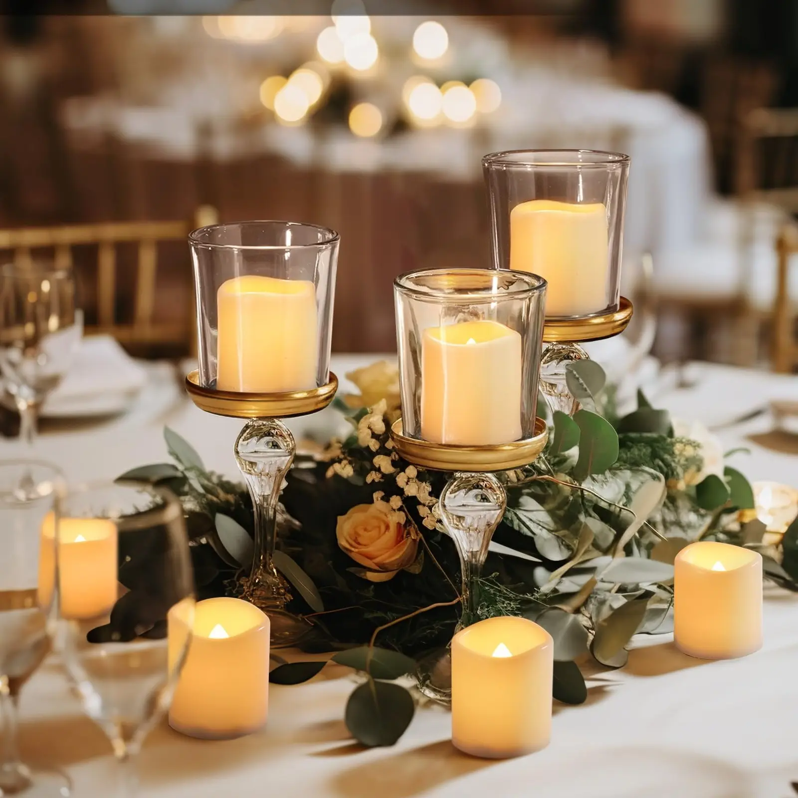 Equipped with the latest LED beads, these candles produce bright, uniform soft white light. The realistic flame effects create a romantic atmosphere, ideal for special events. Each candle measures Φ1.5" X 1.6", fitting most votive holders.