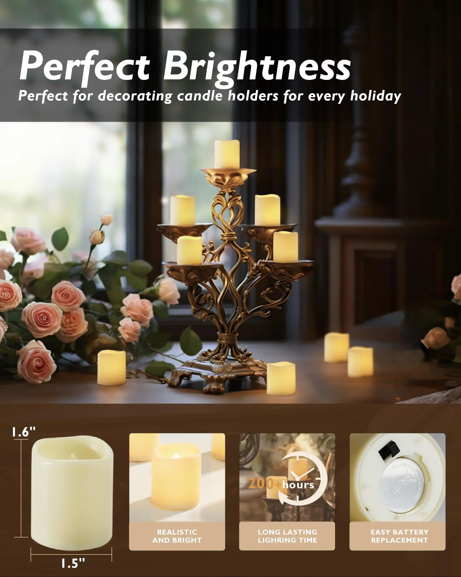 The fake candles have a natural ivory appearance when unlit. They emit a soft whitelight that transitions to a pale yellow, mimicking the flickering of a real candle. This realistic design adds a touch of elegance to any setting, making it a delightful choice for home decor.