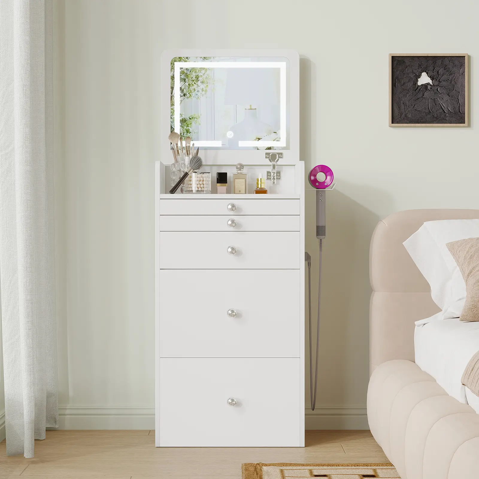 ·【Durable and Sturdy】 Our modern multifunctional white dresser is made of MDF board, which boasts excellent stability and a high-gloss finish that is easy to clean. It is an ideal gift for your wife, daughter, or granddaughter on birthdays, holidays, and other special occasions.
