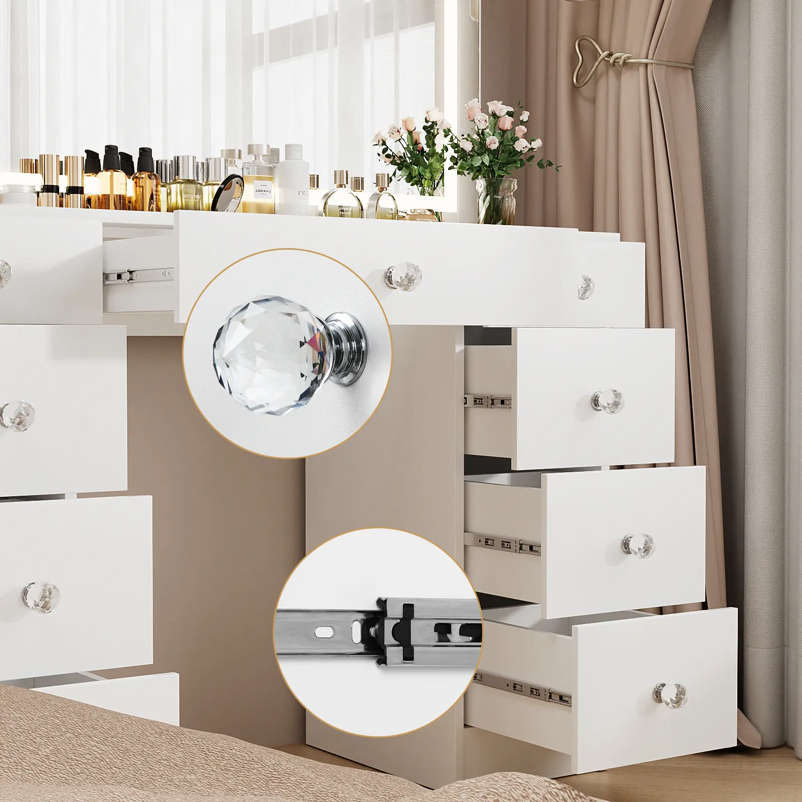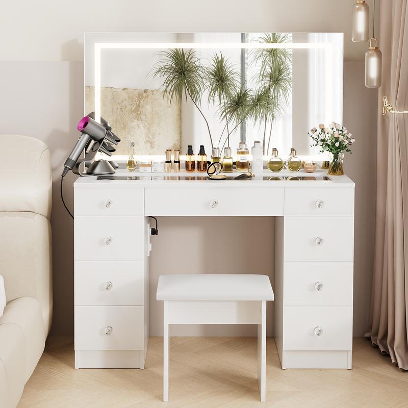 ◆Super Storage: Our vanity desk features 9 large drawers and spacious desktop to store all your beauty essentials.