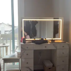 This vanity is beautiful and so simple to build! I thought I was gonna need help but the instructions are VERY easy to read. Is had a lot of space inside and the shelves are cute for plants and stuff. The mirror has amazing lighting and is super big, great desk