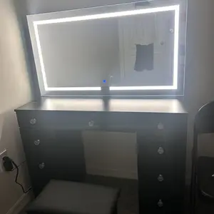 Absolutely love my new vanity. Got it exactly 2 days after placing my order, it came very well protected no damage to it at all, great quality material just in love with it. Totally recommend it to anyone looking to purchasing this!