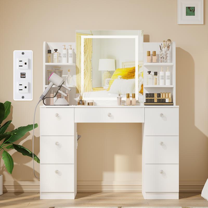 ◆LUXURIOUS & PRACTICAL DESIGN:The 43-inch vanity table offers the perfect blend of style and functionality, making it an ideal addition to your bedroom or dressing room. A comfortable upholstered stool ensures a luxurious and cozy makeup experience.