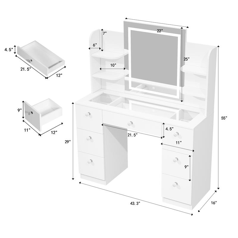 Dressing Table Size: (43.3*16*29)Inches