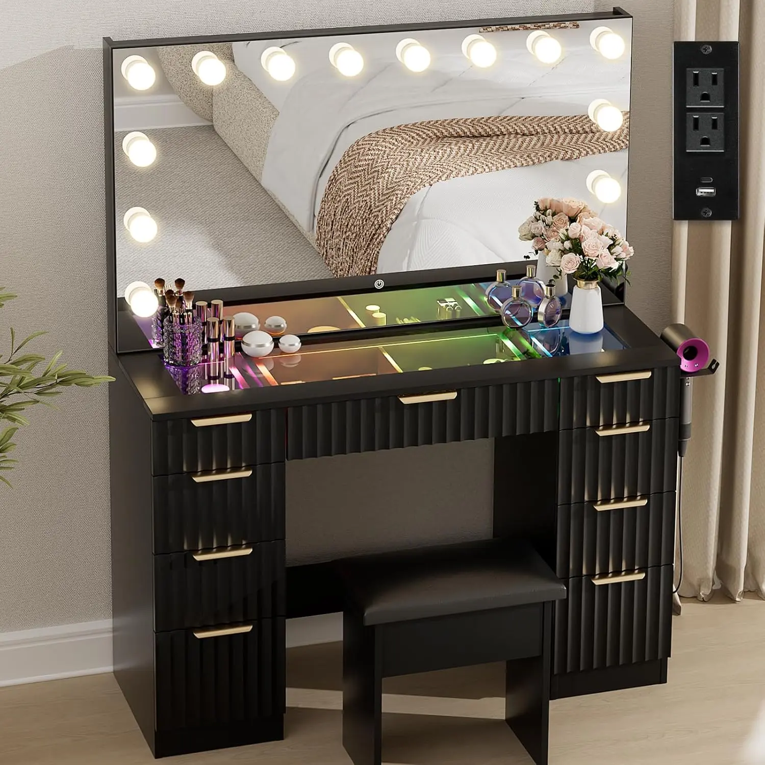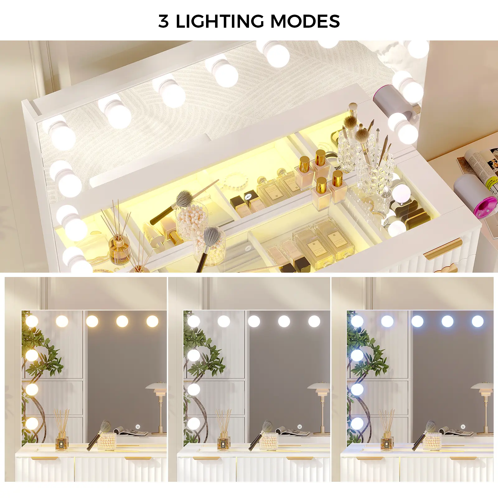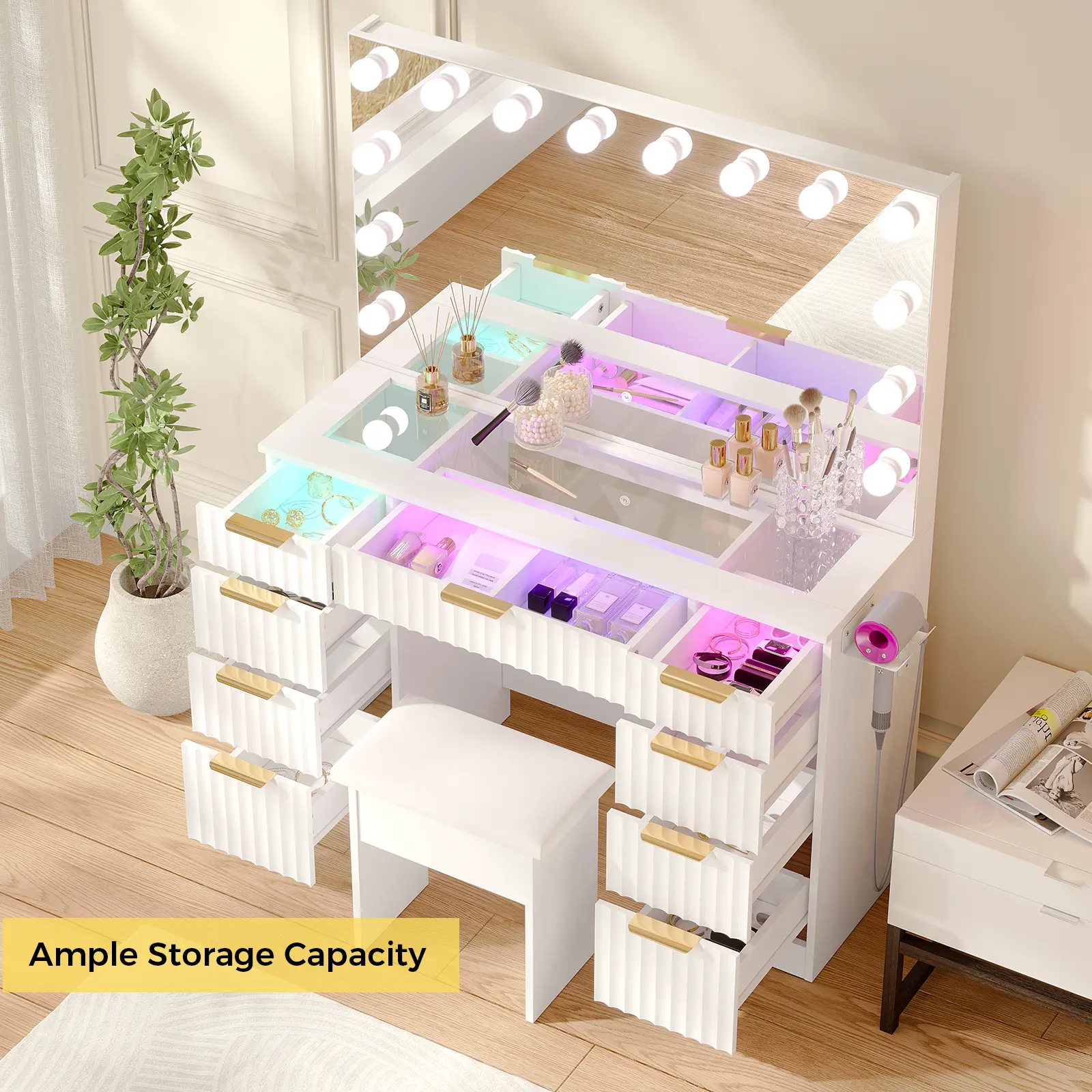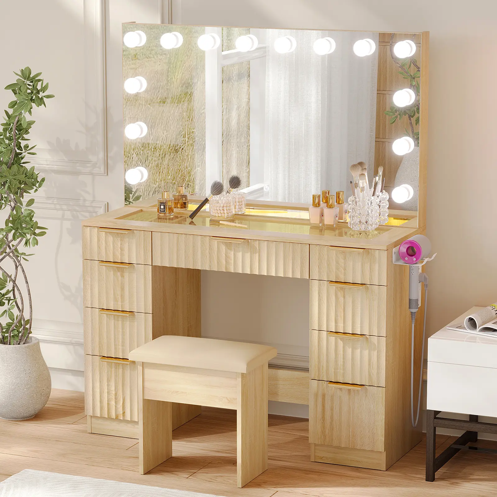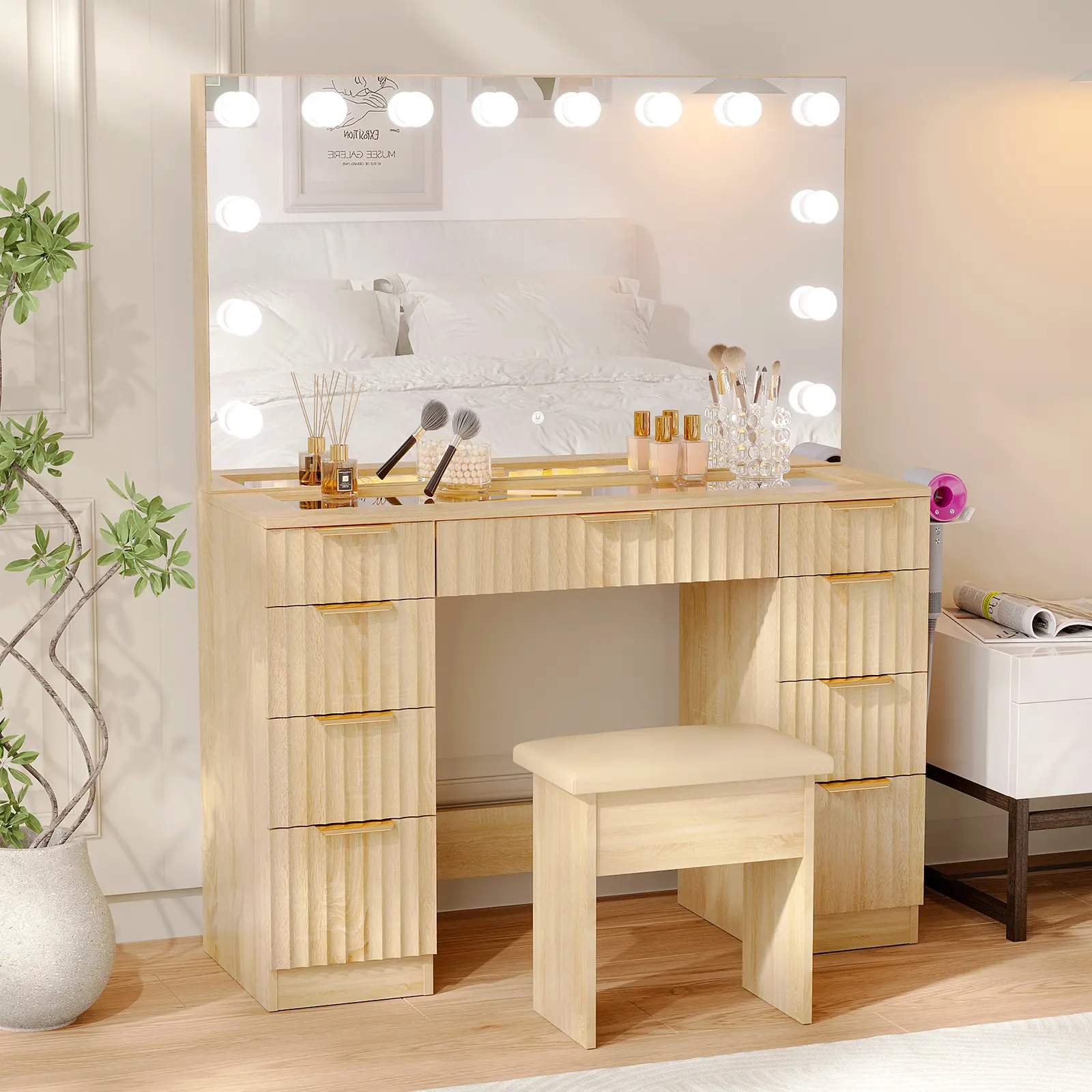 Featuring 9 large drawers, this vanity offers plenty of space to neatly organize cosmetics, skincare products, jewelry, and accessories. Say goodbye to clutter and enjoy a clean, organized setup.