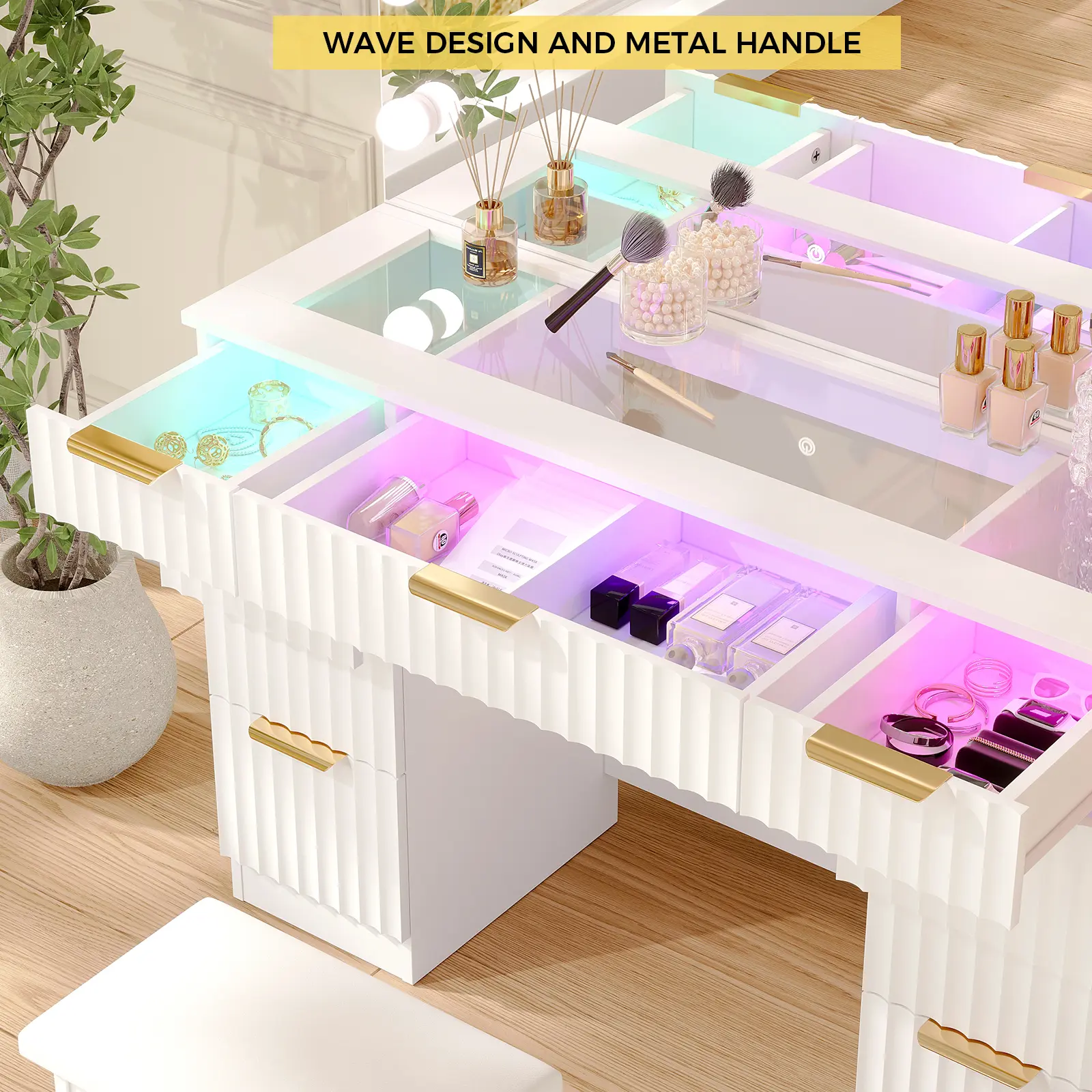 With its unique wave-textured panels, this vanity table brings a modern and chic vibe, making it not only a functional piece but also a statement of style in your room.