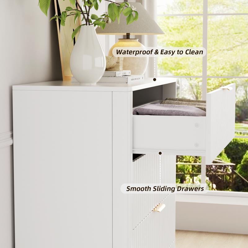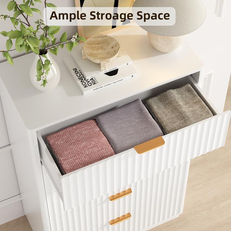 ·Modern Fluted Design: Our Fluted dresser features a sophisticated fluted panel design with sleek curved edges, blending modern minimalism with warm wood tones; The waveform drawer front adds subtle texture, creating an elegant focal point for bedrooms, living rooms, or home offices