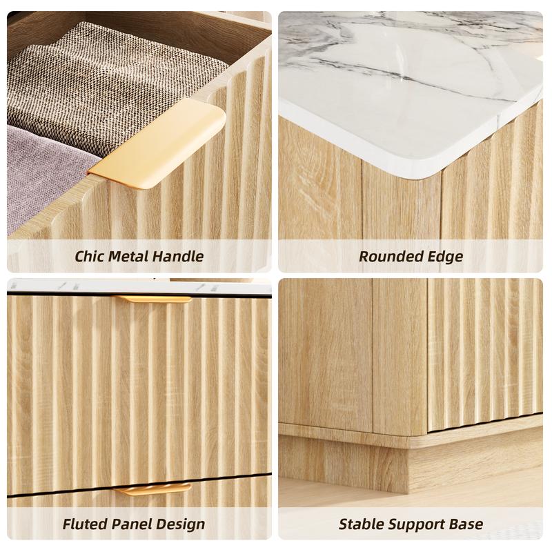 ·Thoughtful Design, Stable Foundation: Every detail is designed for elegance and function. The fluted detailing provides a unique tactile experience, while the sturdy metal handles offer a secure grip. The entire unit is supported by a strong, stable base, guaranteeing a wobble-free and reliable piece of furniture that will last for years