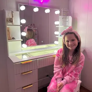 The perfect vanity for your teen’s room. It’s fully loaded with a mirror, lights, and all the storage she needs. #vanity #tiktokshopcybermonday #tiktokshopblackfriday