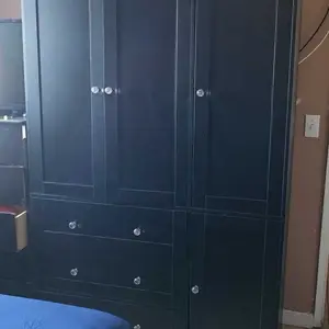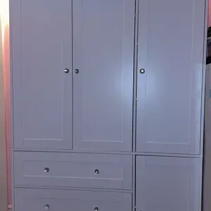 Works as a bedroom armoire or multipurpose unit. Hidden rails and mixed storage blend into any decor.