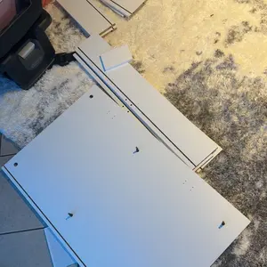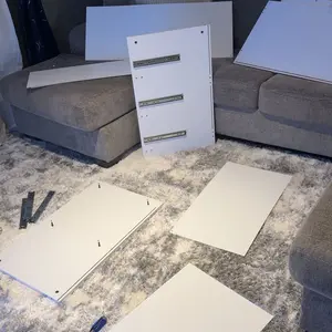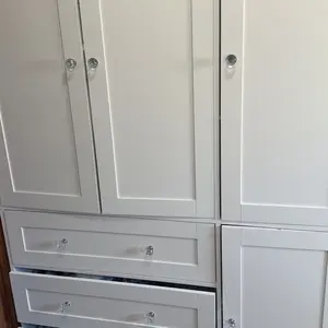 Durable particleboard, metal handles, and hidden drawer rails for smooth operation. Metal-buffered hinges ensure quiet closing.