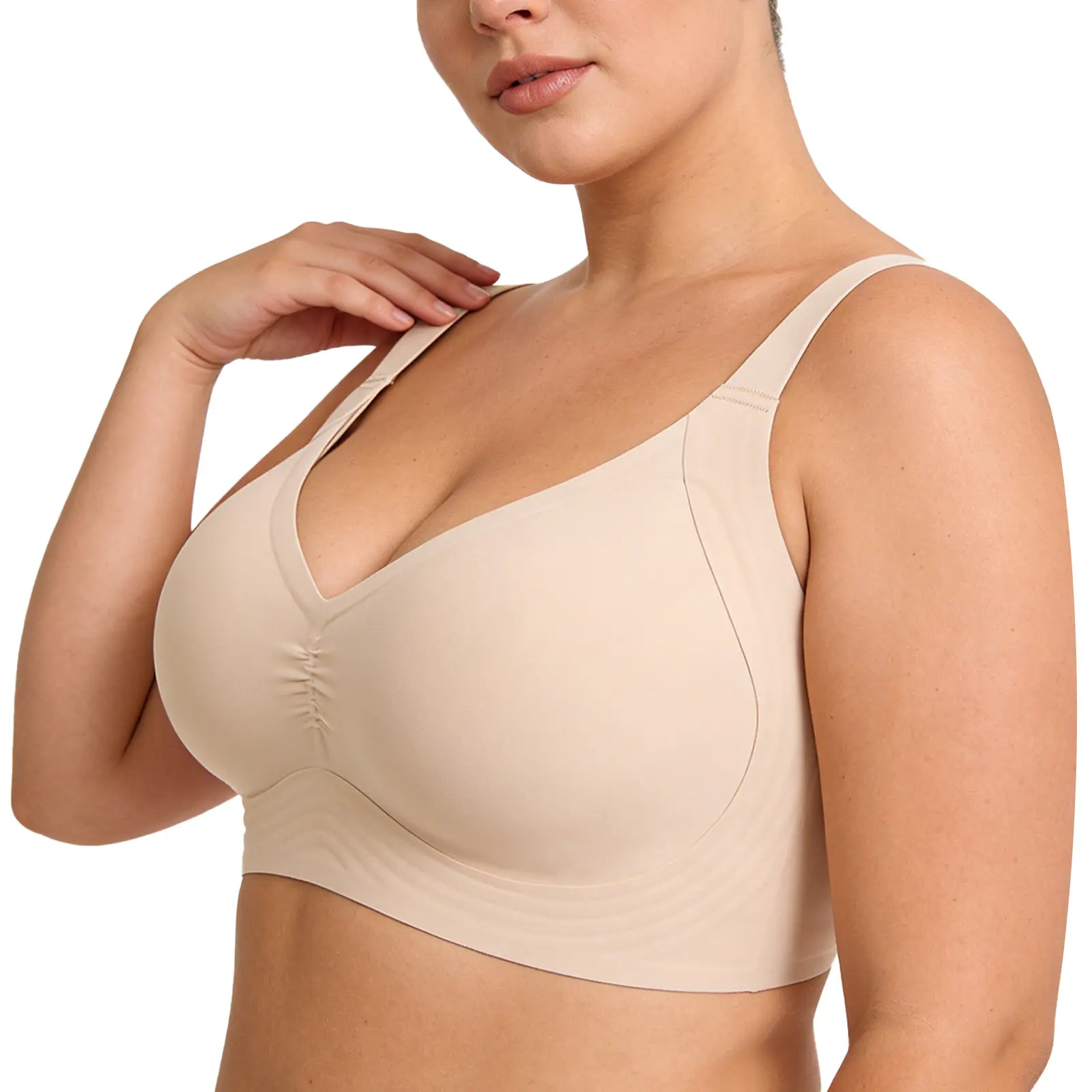 VRCOMFY Women's Comfortable Wireless Bras Push Up Bralettes Seamless T-Shirts Deep V Everyday Bras - Womenswear