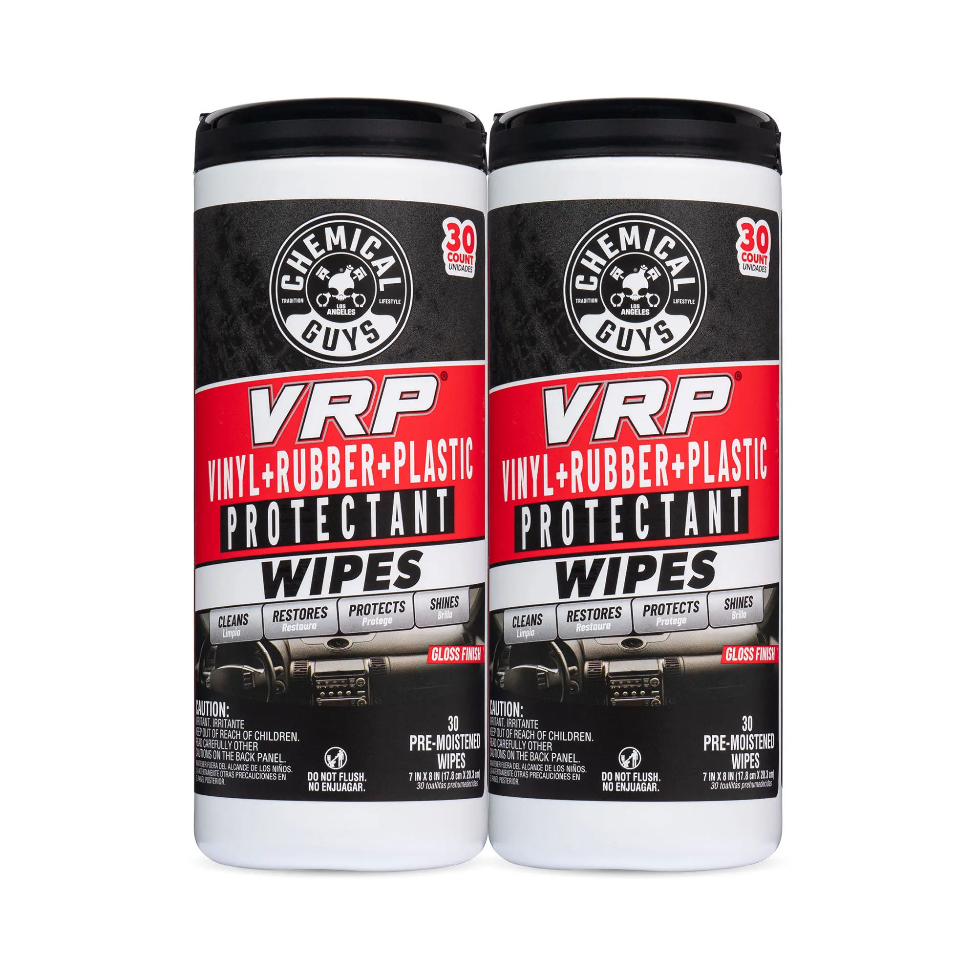 CHEMICAL GUYS 2-Pack VRP Protectant Wipes – Clean, Shine & Protect Vinyl, Rubber & Plastic on Tires, Trim, Dash & Door Panels | UV Protection Against Fading & Cracking | Interior & Exterior Car Detailing Wipes | Non-Greasy, Easy-to-Use, On-the-Go Care