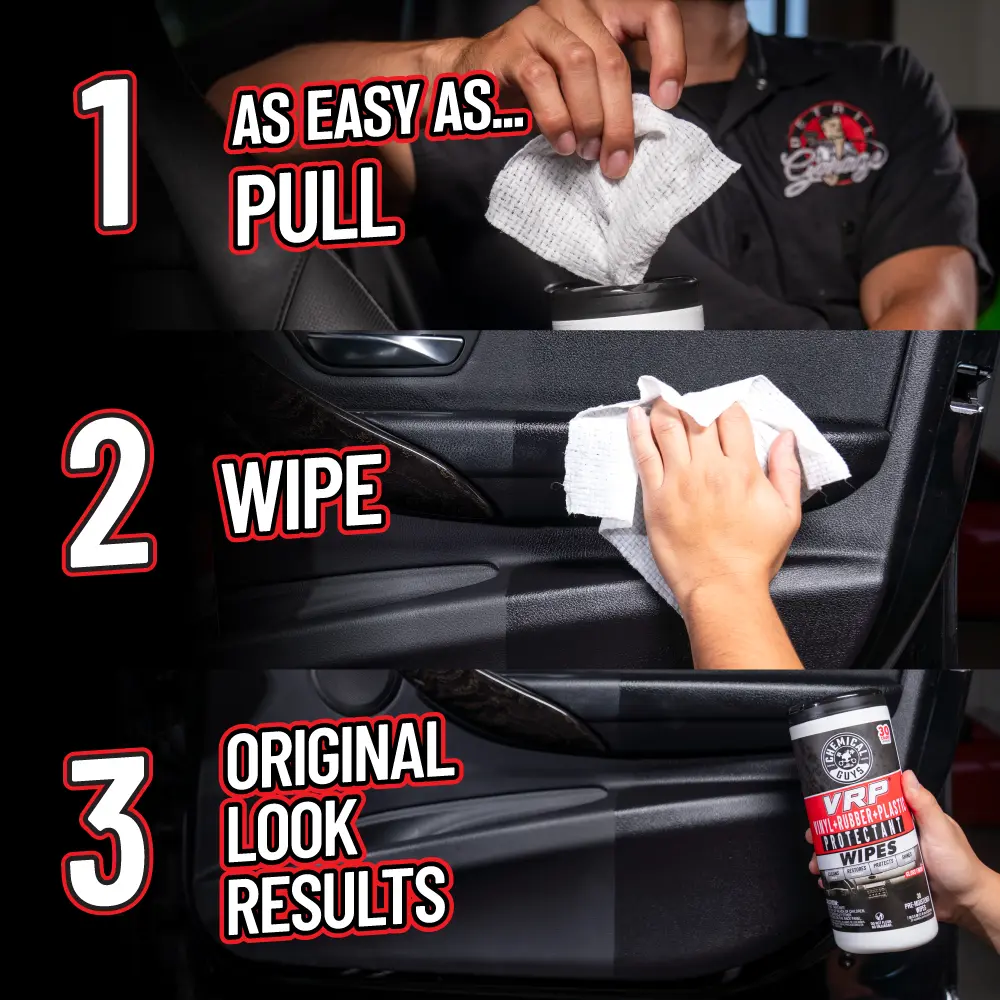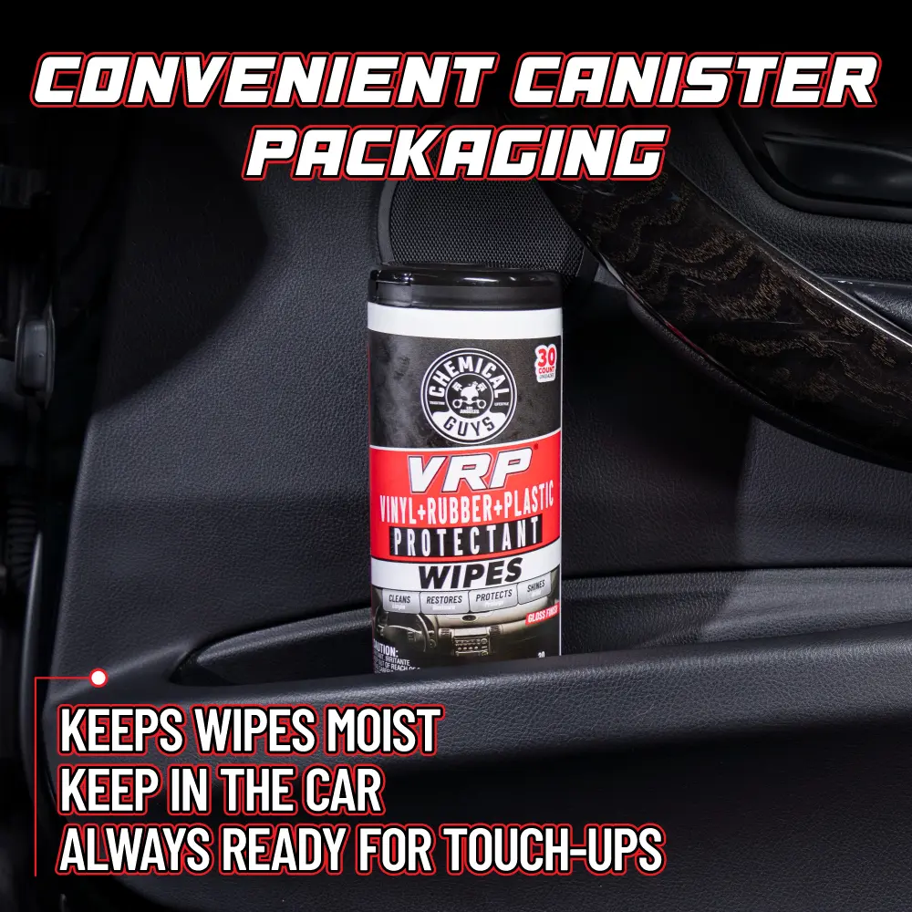 Clean, restore and protect vinyl, rubber, and plastic surfaces with VRP Wipes! #chemicalguys #detailing #carcareproducts #superbrandday #howto