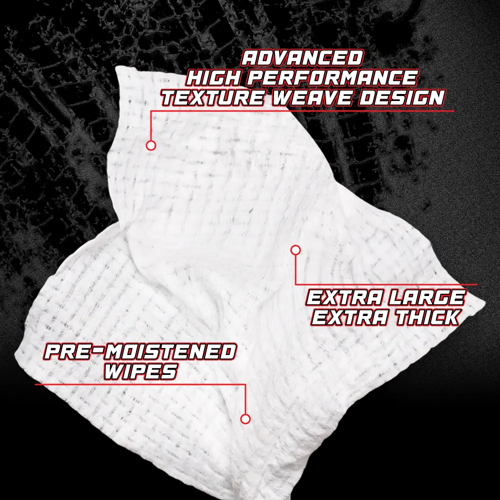 These extra-large, heavy-duty, ready-to-use pre-moistened wipes feature an advanced high-performance texture weave that restores treated surfaces leaving them with a glossy shine and a layer of protection.
