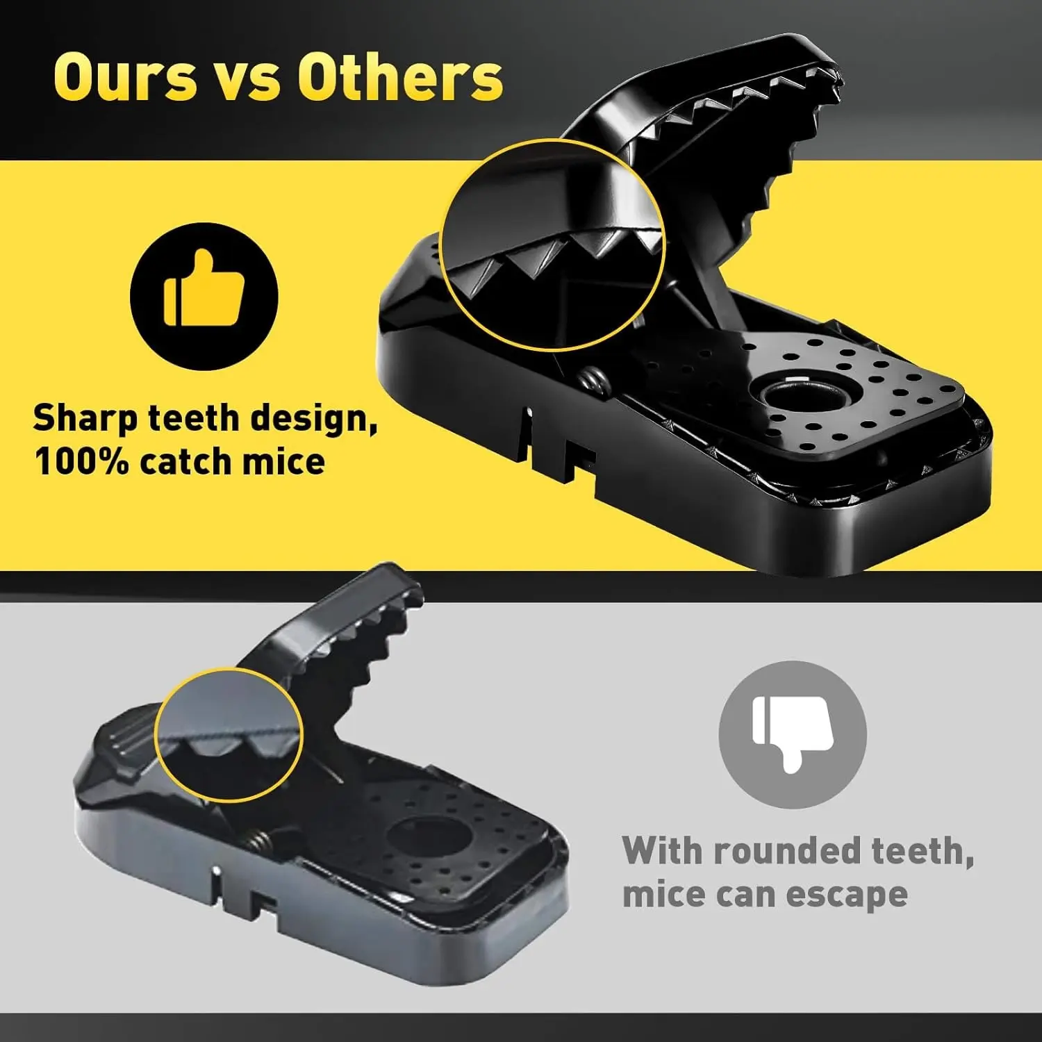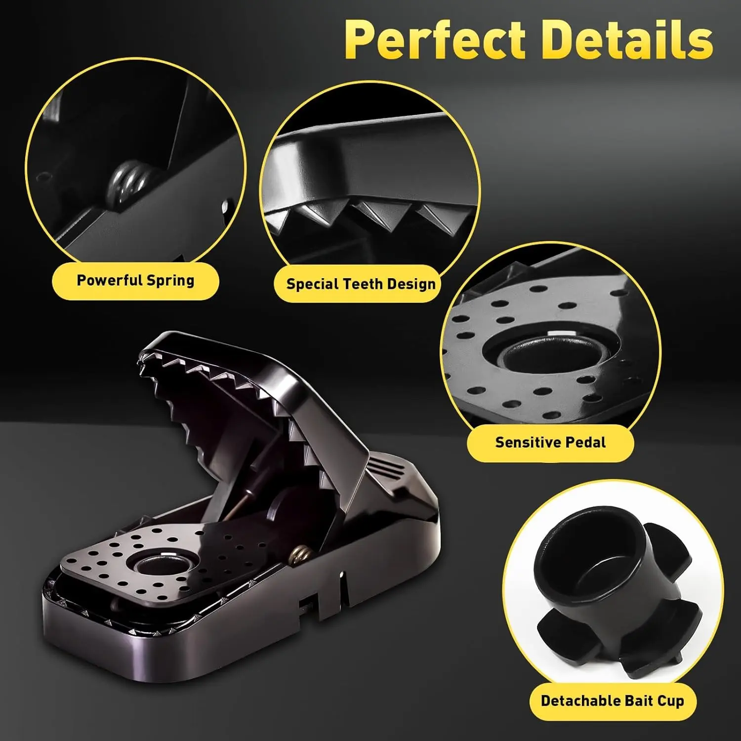 ·【High Sensitivity & Quick Kill】Powerful springs and large open mouths design make them catch and kill rats instantly, only 0.03lbs of weight can trigger the trap and ensure the mouse be killed faster without any pain. Suitable to catch small mice.
