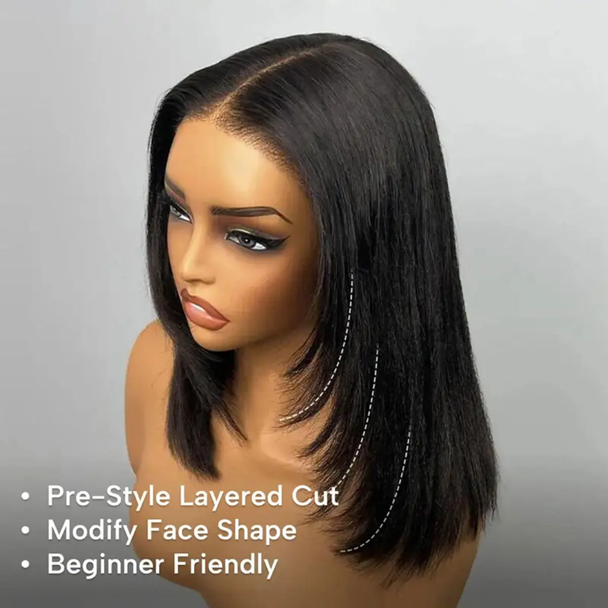 5. Layerd Cut Yaki Straight Human Hair Wigs Pre Styled Glueless Wigs 9x6 T Part Lace Wigs With Drawstring Brazilian Hair Wigs 250% Density Shortcut Bob Wigs