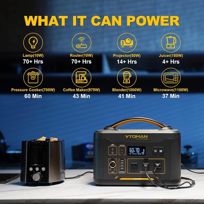 2. Features a decent capacity of 828Wh, and can be expandable to 2376Wh with VTOMAN Jump 1500 Extra Battery(Sold separately).