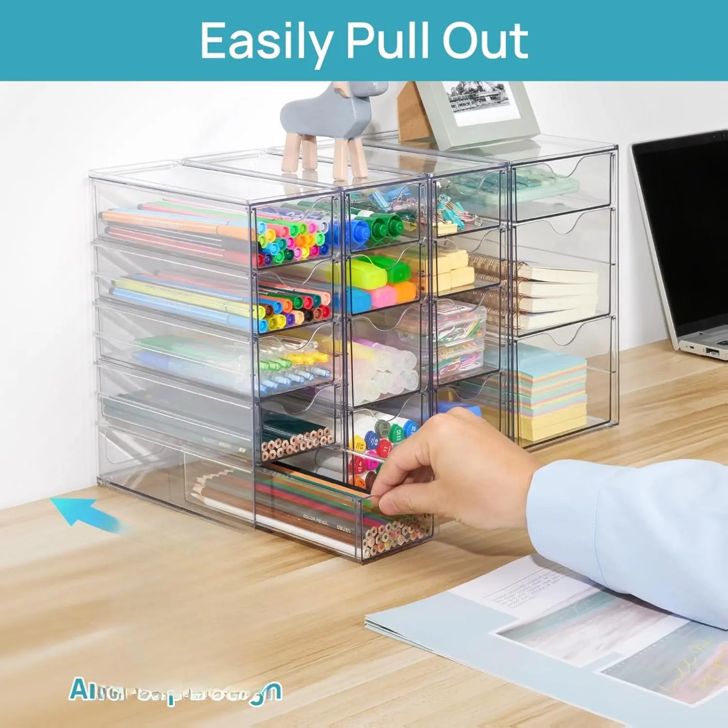 Our Vtopmart Acrylic Organizer features 16/32 drawers, perfect for office supplies, makeup, jewelry, and art crafts. It includes a non-slip silicone pad attached to each box. This pad prevents movement, protects the desktop, and enhances stability. Ideal for keeping your workspace organized and secure.