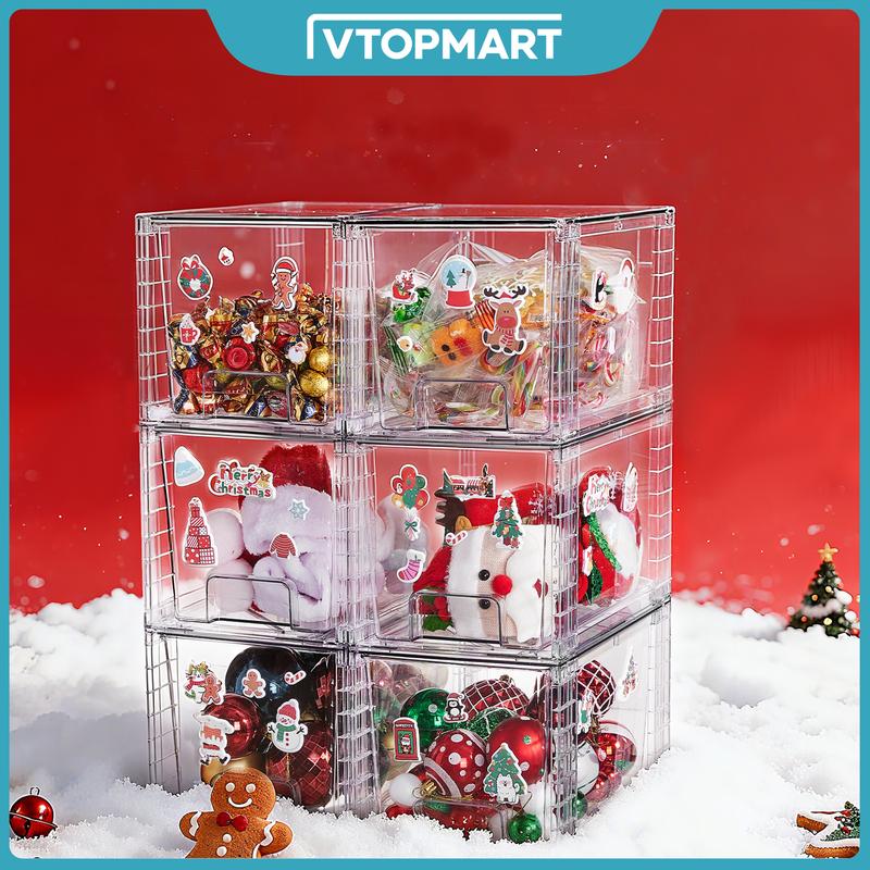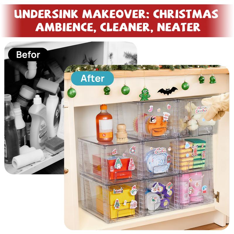 Vtopmart 6-8 Pack Stackable Storage Drawers with Stickers, Bathroom Undersink Organizers for Nursing Bottles,Closet,Cabinet,Pantry,Medicine Organization with Christmas Stickers, Valentines Gift Ideas