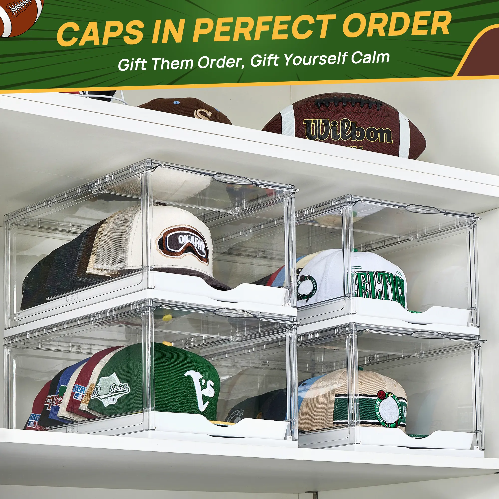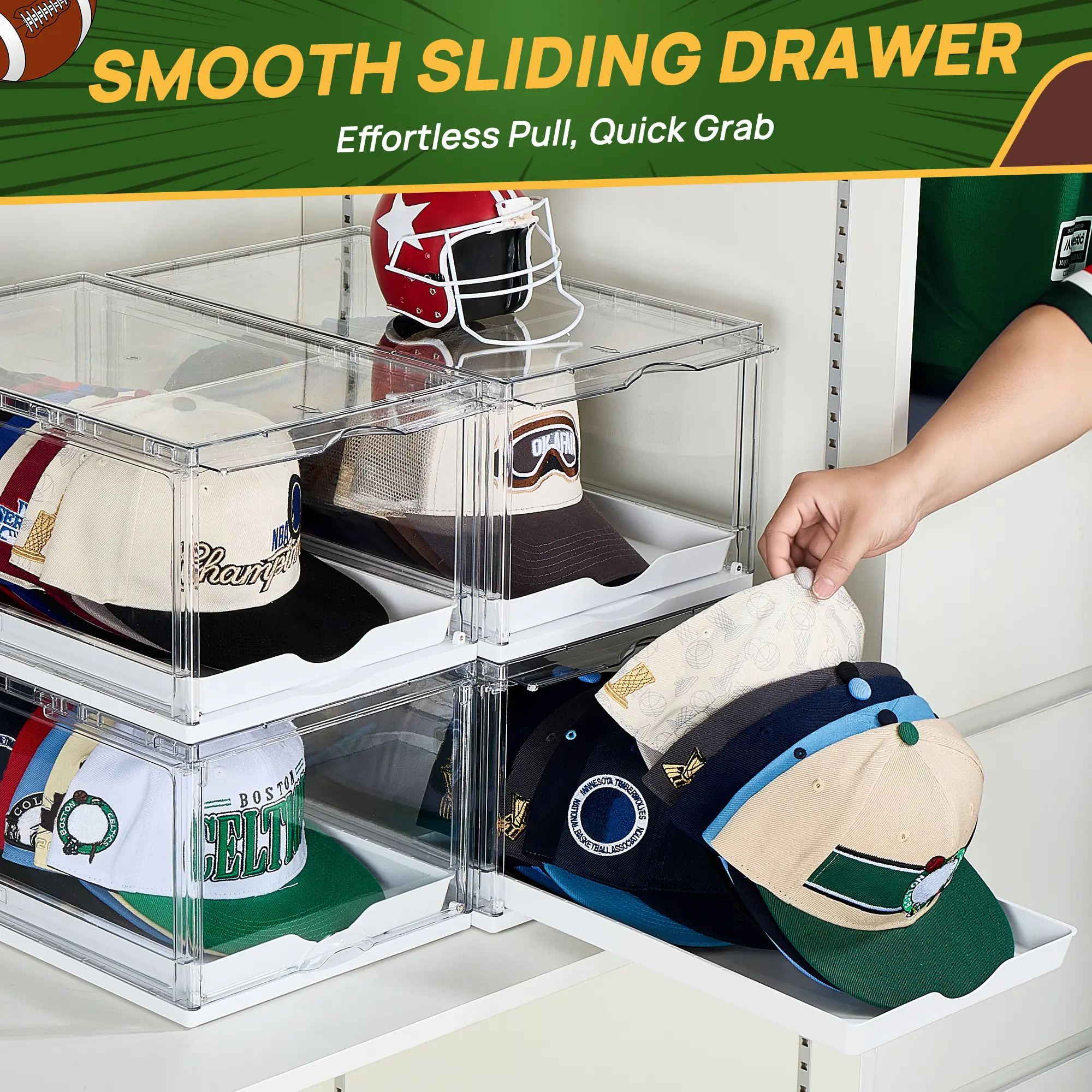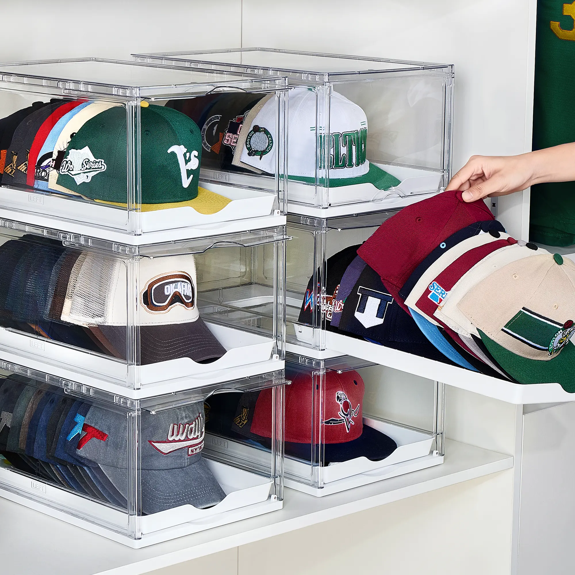 Clear Hats Holder Box: See the contents without opening the box. Drawer Included: Adds extra storage for caps, keeping them organized and out of sight.
