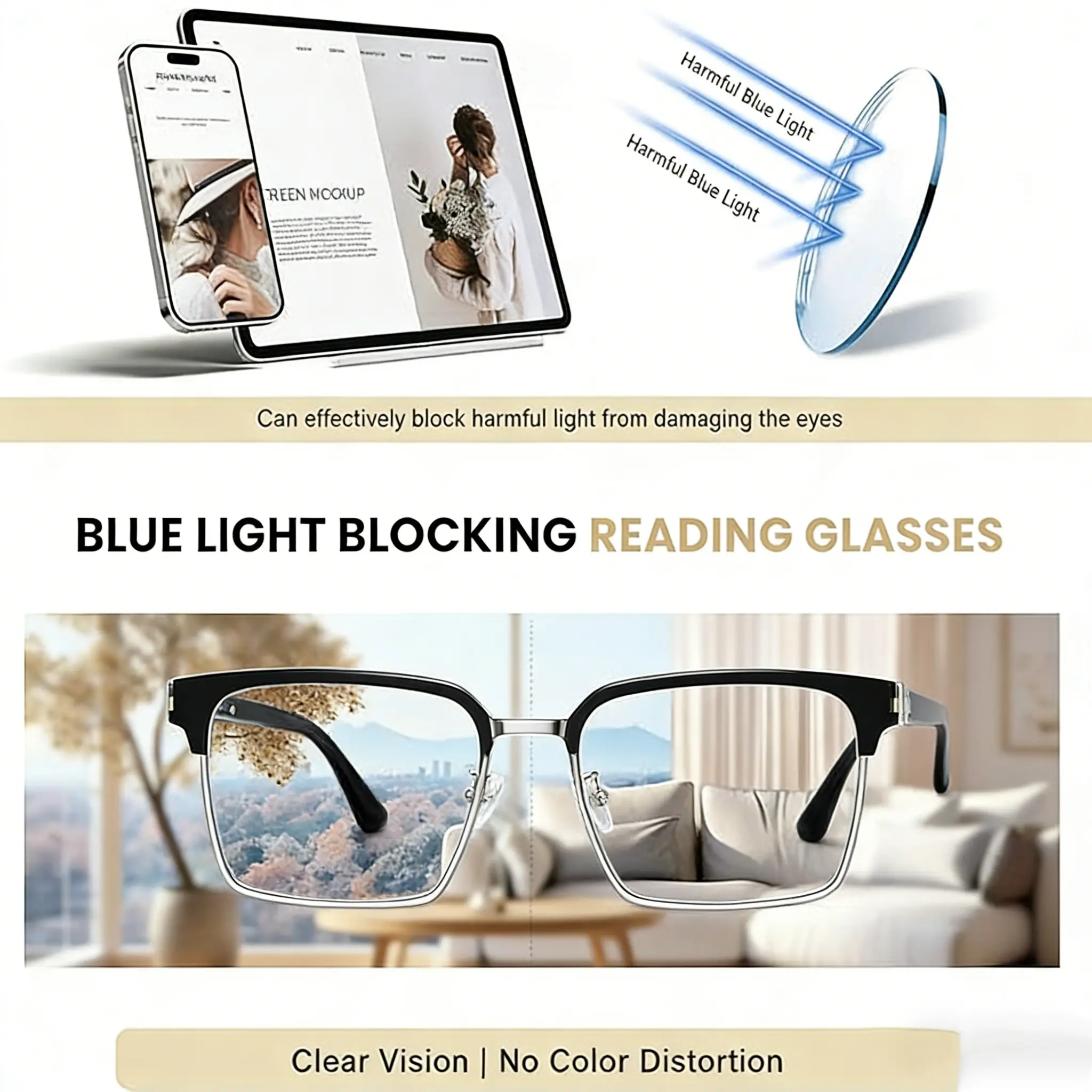 ·Clear Vision with Blue Light ProtectionEquipped with blue light blocking lenses and available in +1.00D, +1.50D, +2.00D, +2.50D, and +3.00D options, these glasses help reduce eye strain and keep your reading sharp and comfortable.